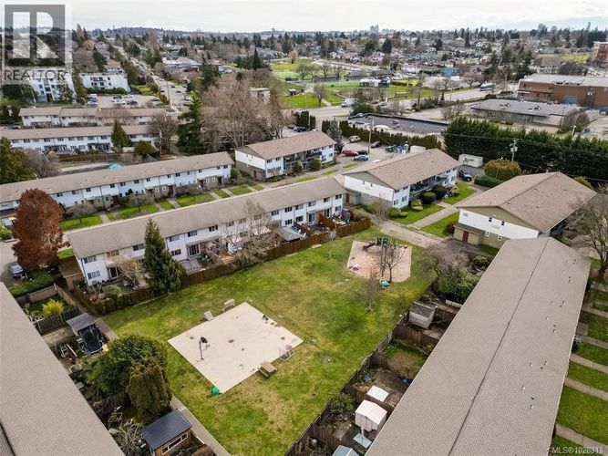 Be part of the Parkside Place community in this 3 bedroom 1.5 bath two level townhouse. This is a terrific choice for families as there is plenty of room to roam and play. The kitchen and laundry room have been renovated to maximize efficiency-it is not only functional it is beautiful! The west facing patio and yard space is fenced to keep kids and pets (two dogs or cats allowed and no weight restriction) in check, and is in a prime location within the complex. The strata fee includes all hot water and heat. A seasonal outdoor pool for the entire family to enjoy, a courtyard outside the front door for a hard surface play space and a playground makes keeping kids entertained a snap. A central location and walking distance to Tillicum Mall, Silver City, Hampton Park, Pearkes Recreation/library and Cuthbert Holmes and Colquitz River Parks. Plenty of in unit storage on both levels. This is a vibrant community for your family! (id:26452)