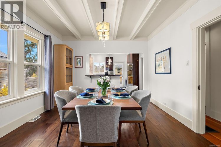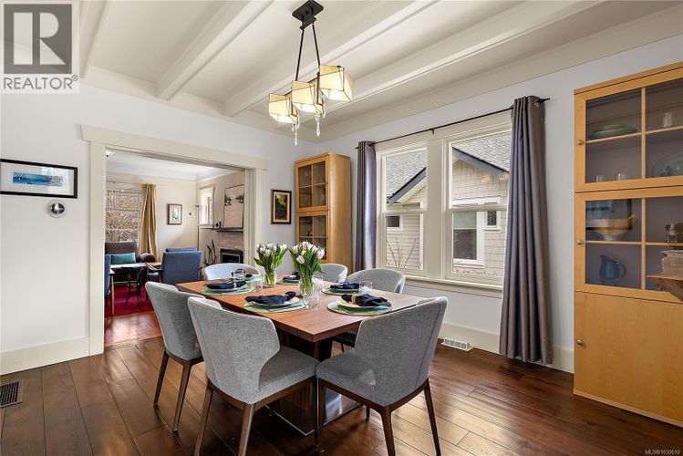 Welcome to 1753 Davie Street, a beautifully renovated 3-bedroom, 2-bathroom Arts & Crafts home in the highly sought-after Jubilee area. Blending timeless character with modern updates, this home features a stunning chef’s kitchen with sleek cabinetry, quality appliances, and a large peninsula perfect for entertaining. The bright, open living and dining spaces showcase classic details, warm wood tones, and thoughtful design throughout. Upstairs offers comfortable bedrooms, while the lower level provides flexibility for guests, work, or hobbies including a woodworking shop wired for 220V on a separate panel. Step outside to a private, landscaped backyard ideal for relaxing or hosting. Located in the heart of Jubilee, you’re just minutes to Oak Bay Village, top schools, parks, transit, and the hospital, with easy access to downtown Victoria. A perfect balance of charm, function, and location—this is one you don’t want to miss. (id:26452)