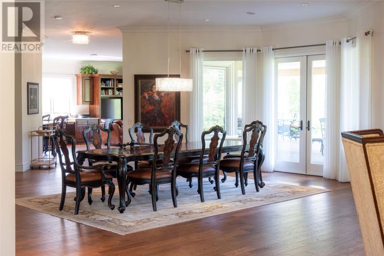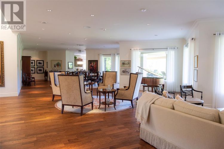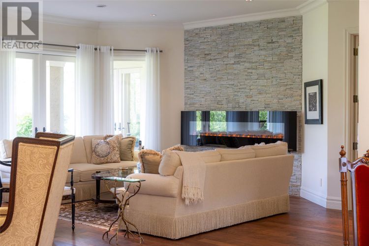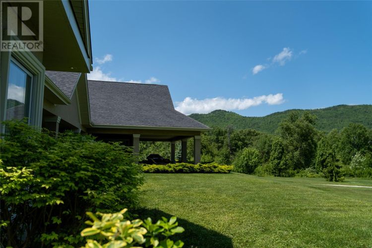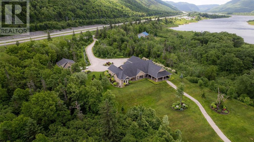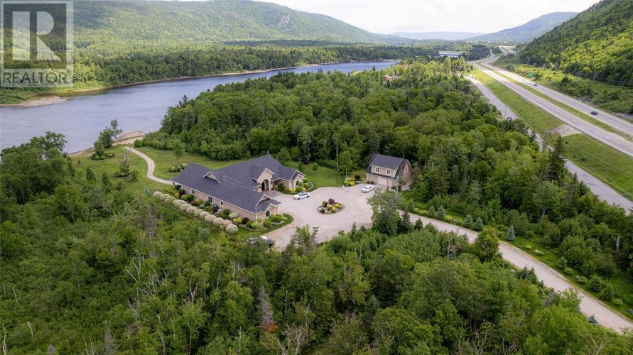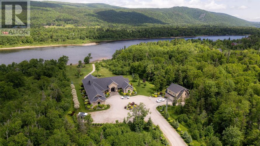 Welcome to 481 Marble Drive - the most distinguished private estate currently offered in Newfoundland. Behind wrought-iron security gates lies an extraordinary opportunity to own what can only be described as a private resort. Spanning 3 meticulously landscaped acres on the banks of the iconic Humber River, this legacy property is a masterwork of design, craftsmanship, and natural beauty. This 5,600 sq. ft. custom-built residence blends timeless architectural elegance with modern comfort at the highest level. From the chef's kitchen outfitted with professional-grade appliances, to the spa-inspired primary suite, every detail speaks to quality without compromise. Each guest bedroom offers its own ensuite and are situated away from the primary suite to ensure ultimate comfort and privacy. An energy-efficient geothermal heating and cooling system and a backup generator ensure seamless year-round living. Step outside to a covered paver patio overlooking 353 feet of direct riverfront - complete with beach access. This is more than a home; it's a personal sanctuary. The estate also includes an oversized attached double garage, and a beautifully appointed guest house above the detached garage - perfect for guests, staff, or extended family. Located just 20 minutes from Deer Lake Regional Airport, this one-of-a-kind retreat places you minutes from world-class salmon fishing, Marble Mountain Ski Resort, and two renowned golf courses - Humber Valley Resort and Blomidon Golf & Country Club. Whether you seek a private family compound, a wellness retreat, or a trophy residence, 481 Marble Drive offers unmatched lifestyle in one of Atlantic Canada's most awe-inspiring settings. (id:26452)