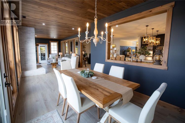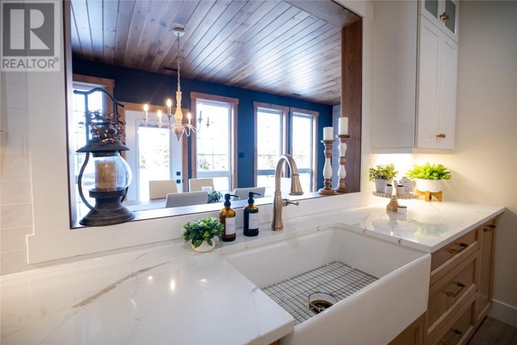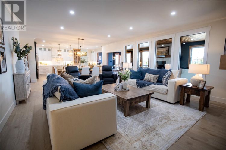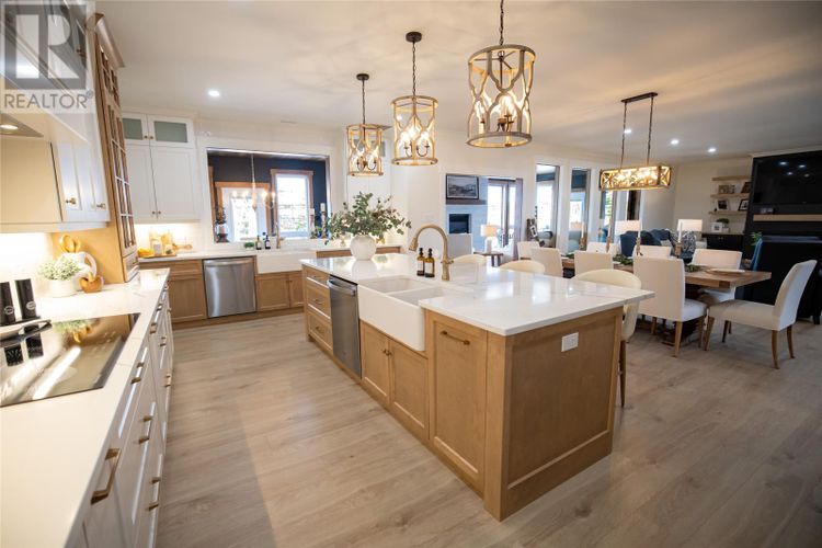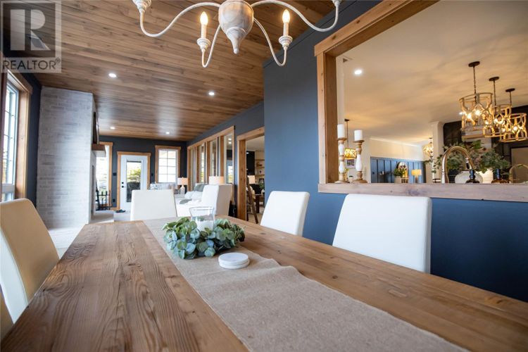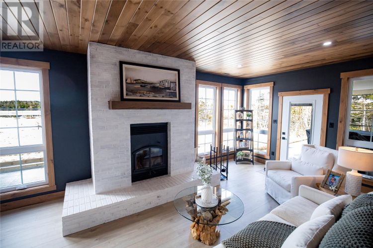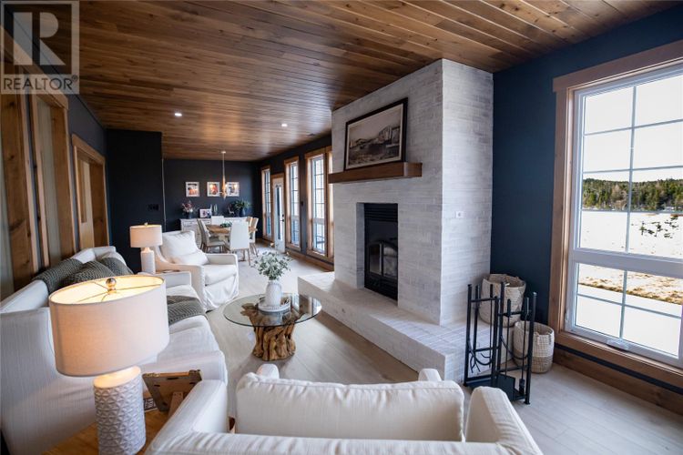 Welcome to 22 Balsamwood Road. This stunning executive slab-on-grade home is perfectly situated on a large waterfront lot in the sought-after community of Paradise. Offering exceptional curb appeal and thoughtful design throughout, this property blends elegance, comfort, and versatility in every detail. Step inside to a bright, open-concept layout featuring a spacious living room, a large dining area, and a beautiful kitchen. The kitchen is designed for both everyday living and entertaining, complete with solid surface countertops, a prep sink, and a convenient pass-through window to the sunroom. The sunroom is a true highlight of the home, showcasing a cozy wood-burning fireplace, an additional living and dining area, and an abundance of windows that frame beautiful views of the backyard and pond. Step outside and enjoy your own private waterfront retreat, complete with a charming wharf extending into the pond, perfect for relaxing, entertaining, or taking in the peaceful surroundings. This home offers five generously sized bedrooms, including a luxurious primary suite featuring a large walk-in closet and a spa-inspired ensuite with a soaker tub and custom tiled shower. With multiple additional rooms, you have the flexibility to create a home gym, playroom, or games room to suit your lifestyle. A dedicated office space at the front of the home provides the perfect setting for remote work or a quiet retreat. Additional features include two covered patio decks for year-round enjoyment, an oversized attached garage with mini split and a central heat pump for the house as well as a constant water pressure system. This home sit on a beautifully landscaped lot that enhances the impressive presence. A rare opportunity to own a waterfront property that offers space, style, and unmatched versatility, this home is truly a must-see. (id:26452)