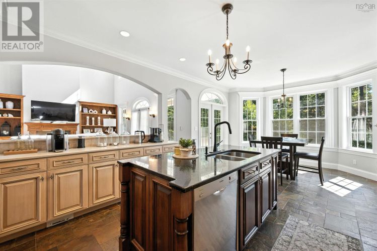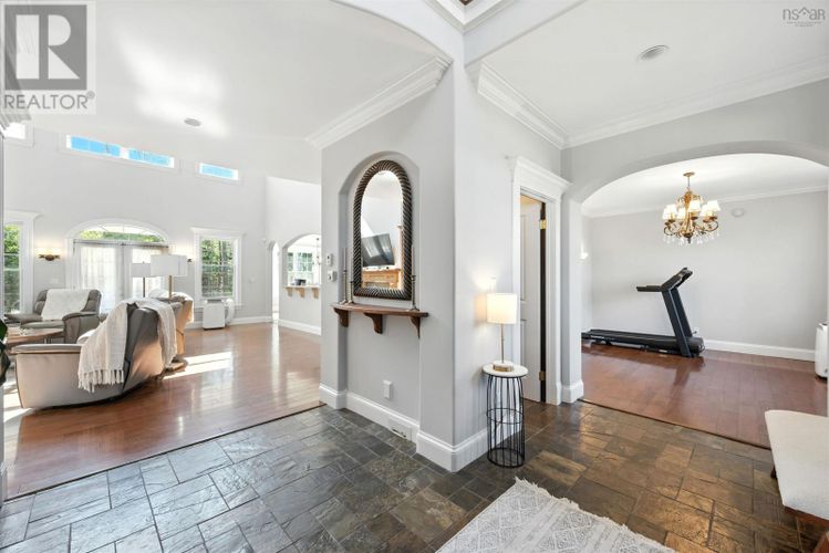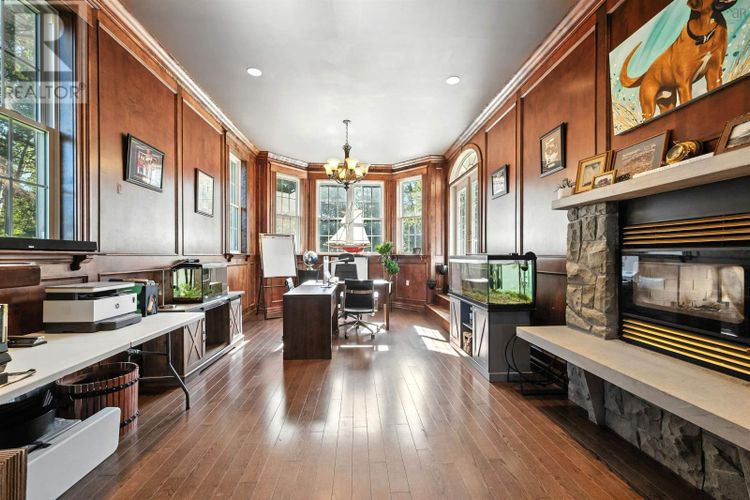 Custom-built and set on 10 acres in peaceful Little Harbour, this executive home blends timeless design with modern comfortjust minutes from Trenton and New Glasgow. From the moment you step inside, the soaring 22 great room makes a statement with its double-sided fireplace and wall of windows filling the space with natural light. The kitchen is a chefs dream with double ovens, cooktop, pantry, and plenty of storage, while the adjoining sunken flex room with wet bar and walk-out patio is perfect for entertaining. The seller also installed a Heat Master system, making the in-floor heating highly efficient and cost-effective during the winter months. Guests will enjoy the convenience of a main floor suite with private bath, while the striking spiral staircase leads to a bright second level featuring three spacious bedrooms plus a luxurious primary suite with his-and-hers walk-in closets and spa-style ensuite. Downstairs, the fun continues with a games room, exercise/home theater area, craft room, and over 600 sq. ft. of storage. With commercial zoning at the driveway, the property offers extra opportunity for future use. For those seeking even more land and privacy, an adjoining 115± acre parcel of hardwood and softwood forest is also available for purchase. (id:26452)