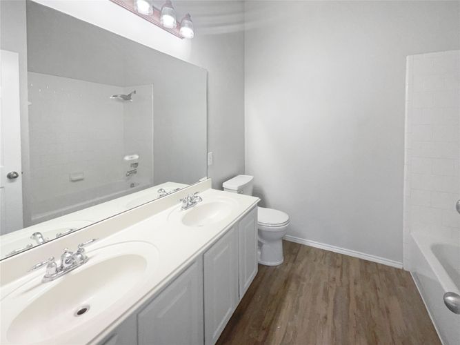 Welcome to this beautifully maintained property. The primary bedroom boasts a spacious walk-in closet, perfect for your storage needs. The primary bathroom is a haven of relaxation with double sinks, a separate tub, and shower, providing a spa-like experience. The home's fresh interior paint adds a modern touch. Outside, enjoy the covered patio, ideal for entertaining or simply relaxing. The fenced-in backyard offers privacy and a safe space for outdoor activities. This property is a must-see for those seeking a comfortable and stylish living environment.This home has been virtually staged to illustrate its potential.. Home comes with a 100-Day Home Warranty and a 7-Day Home Test Drive to move in 7 days early for free