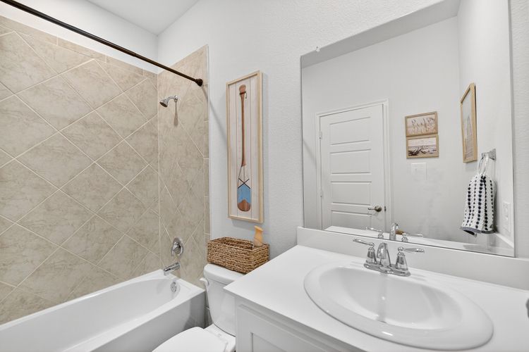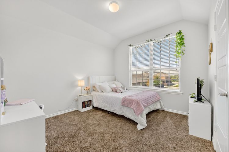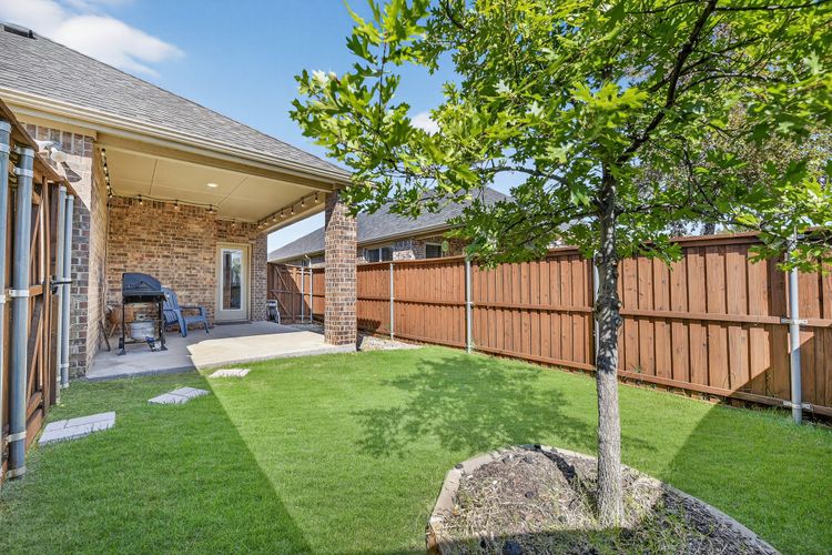 Nestled on the bank of Lake Lewisville, Valencia on the Lake residents enjoy beautiful views and walk paths along the lakes. The home offers fantastic curb appeal with charming stone accents and a welcoming exterior. Inside, you’ll find an open-concept floor plan featuring warm, wood-look vinyl flooring and a stylish kitchen with granite countertops that flows seamlessly into the dining area—illuminated by a beautiful chandelier—and a spacious living room, perfect for entertaining or relaxing. This home offers four bedrooms, including a primary suite with a separate soaking tub and glass-enclosed shower, plus a secondary bedroom conveniently located downstairs. Upstairs, 2 additional bedrooms a full bath and a secondary attic space provides a great opportunity to create a media room, game room, or extra storage. Step outside to enjoy the covered patio overlooking a lush grassy backyard—ideal for morning coffee or evening gatherings. Residents of Valencia on the Lake enjoy secluded community resort-style amenities, including two swimming pools, a splash pad, cabanas, a state-of-the-art fitness center with lake views, a clubhouse, sand volleyball, tennis and basketball courts, and scenic hike and bike trails. The community also features abundant green spaces and direct access to Lake Lewisville and Located Little Elm ISD with future onsite Elementary. Perfectly situated near shopping, dining, and entertainment in Frisco, Little Elm, and The Colony, this home offers the ideal blend of comfort, style, and convenience.