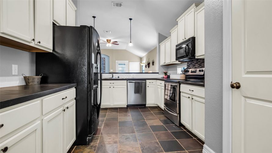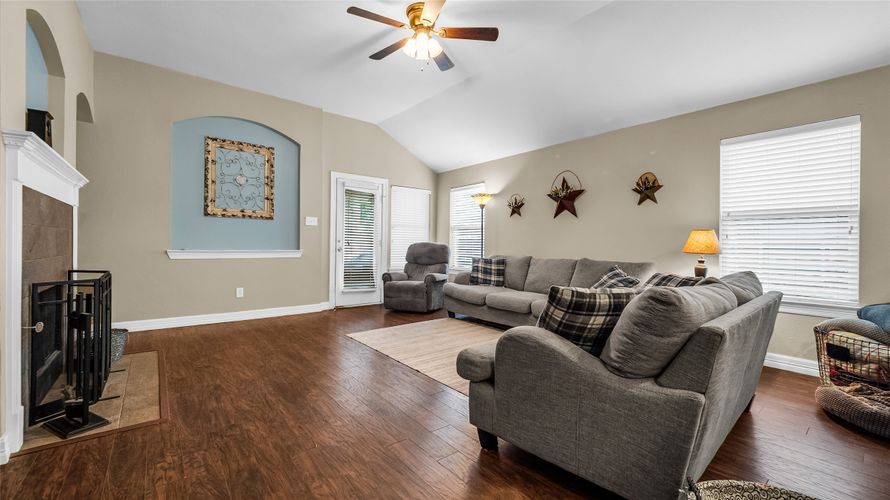 Charming and spacious, open floorplan with 4 bedrooms and 2 full baths. The split floorplan allows primary ensuite its own area separated from the other three bedrooms. Fabulous features include; arched openings, built-in book shelves, art niches, slate flooring in primary bath and kitchen, engineered wood floors through the main areas of the home. The kitchen is equipped with stainless steel appliances and natural lighting with counter level windows on either side of the range. Great neighborhood provides four swimming pools, ball fields, work out center, hike and bike trails with acres of greenbelts. Recent foundation work completed June of 2025 with transferable warranty. Roof was replaced in 2018 and gas hotwater heater installed in early 2025.