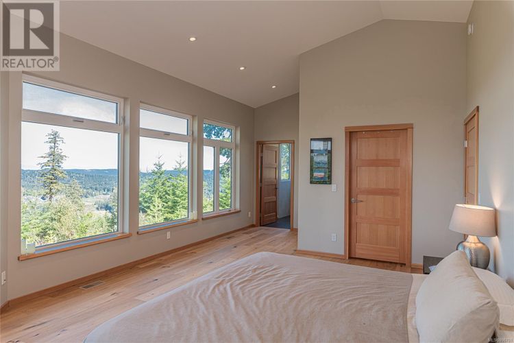 A supreme blend of quality, light and views, this 2,500 square foot, one level, executive mountain home truly achieves the ideal contemporary yet west coast design. The open and elegant living area welcomes you right into the view with a master bedroom plus guest space and office wing on opposing sides. Soaring ceilings and immense sections of glass look out onto a dramatic ocean, lake and island backdrop, with the finest finishing and progressive features, the grand space does nothing to diminish the relaxed, comfortable and quality ambiance. Here you can work, entertain and hit the trails accessed steps away where one can climb to the peak of Mt Erskine, a beloved island trail leading to aerial views over Sansum Narrows and Vancouver Island. Serviced by a private drilled well, and with all the protection of New Home Warranty, this close to Ganges home was constructed by one of Salt Spring's finest builders, and is certainly to be treasured. (id:26452)
