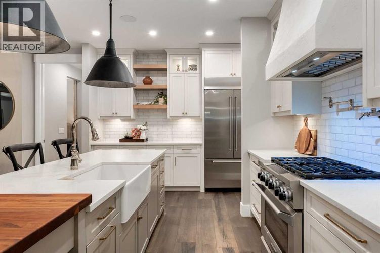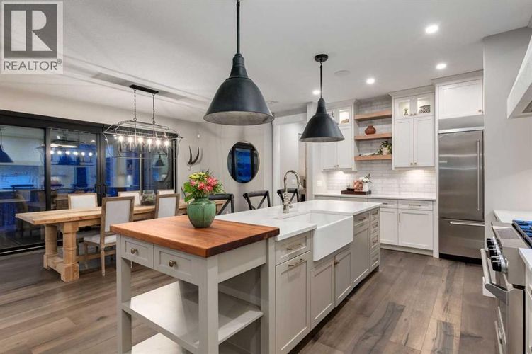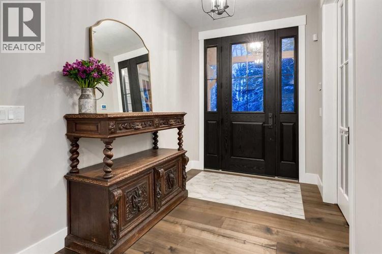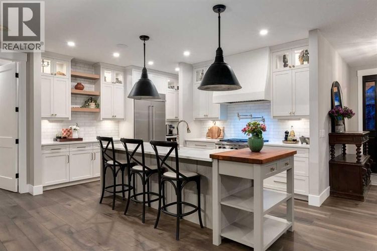 This SPECTACULAR LIFESTYLE Property is the PERFECT ESTATE for the AVID OUTDOORSMAN located in the gated community of Square Butte Ranches on 1.98 ACRES w/BREATHTAKING — UNINTERRUPTED — MOUNTAIN VIEWS + a LUSH, TREED YARD!!This AWARD-WINNING 1.5 Story home blends MODERN FARMHOUSE + OLD-WORLD CHARM, offering 3,318 Sq. Ft. of DEVELOPED LIVING SPACE, 3 Bedrooms, 3.5 Bathrooms, WALK-OUT Basement, Home Gym, Guest Quarters + ATTACHED TRIPLE GARAGE w/8’ doors (TRUCK + BOAT).STUNNING CURB APPEAL w/Hardie Board siding, Stone accents + NATURAL WOOD pillars. An incredible backyard feat. a WRAP-AROUND Deck w/ MOUNTAIN VIEWS, STONE-CLAD WOOD-BURNING Fireplace, OUTDOOR DINING, DUAL GAS BBQ LINE + a HOT TUB!! Inside this “IMMACULATE” home, you’re welcomed by 9’ knockdown ceilings, rich wide-plank hardwood flooring + a neutral colour palette throughout, thoughtfully incorporating both NEW + VINTAGE elements.Off the foyer is a private office feat. CUSTOM BUILT-INS, along w/a 2PC bath for guests. The main living room showcases striking BLACK-FRAMED Windows that capture the MOUNTAIN VIEWS, along w/a STUNNING STONE-CLAD gas fireplace w/a wood mantle focal point + elevated TRAY CEILING for added depth + architectural interest.The SPACIOUS dining area flows seamlessly into the INCREDIBLE CHEF’S KITCHEN, complete w/two-tone custom floor-to-ceiling cabinetry, under-cabinet lighting, a LARGE island finished w/QUARTZ + a BUTCHER block extension + a farmhouse sink. Premium SS APPLIANCES include a 36” GAS RANGE w/a POT FILLER, a Venetian plaster range hood + a DOUBLE fridge. Large sliding doors off the dining area create a seamless INDOOR-OUTDOOR LIVING experience.Archway leads to the mudroom + BUTLER’S PANTRY w/built-in microwave, while the Laundry Room connects to the garage.The PRIMARY BEDROOM is a serene retreat w/a tray ceiling + large windows that fill the space w/natural light, complemented by a SPA-INSPIRED ENSUITE showcasing stone work, a freestanding tub, glass shower + dual va nity + a CUSTOM WALK-IN CLOSET w/built-in shelving + thoughtfully designed storage. A LOFT above the garage is ideal for GUEST QUARTERS w/a private exterior entrance + access through the garage, VAULTED ceilings, a partial kitchen w/farmhouse sink, microwave + mini fridge, built-in bench seating, a 3PC bath + wardrobes. The WALK-OUT basement feat. a WINE ROOM w/stone wall, a SPACIOUS family room w/MOUNTAIN VIEWS. Next, a flex space w/a WET BAR equipped w/cabinetry, a wine fridge + sink. A HOME GYM w/10MM glass doors, rubber flooring + mirrored wall. The 2nd + 3rd bedrooms are a GOOD SIZE w/a 4PC bath + utility/storage room.Square Butte Ranch: 480 ACRES w/Ponds + Pastures + PRIVATE Riding Trail + AMENITIES incl EQUESTRIAN FACILITY (heated barn, tack room, trailer storage, riding arena, round pen, paddocks), SALOON, gym, stocked pond, trout stream + community garden— ideal for FULL-TIME LIVING or FLEXIBLE, COME-AND-GO LIFESTYLE + direct access to Kananaskis Country: hiking, biking, trail riding + MORE!! (id:26452)