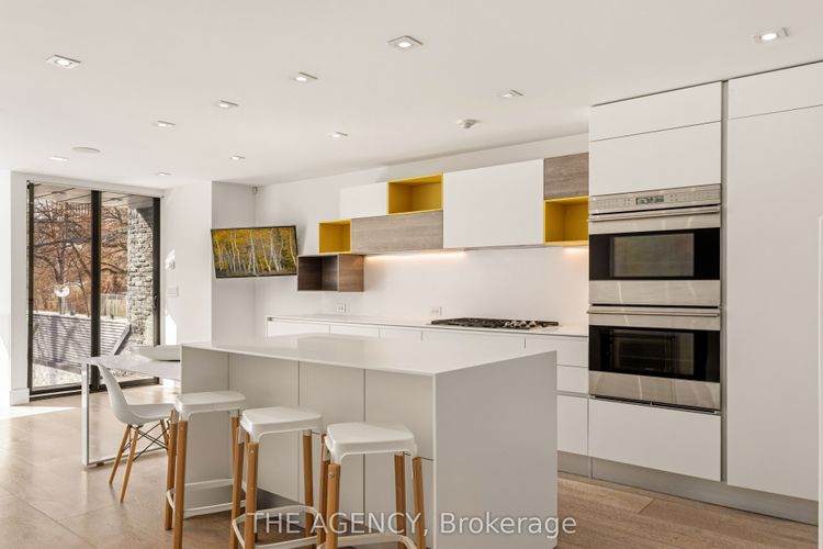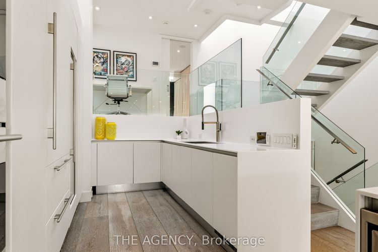 A bold contemporary residence in the heart of Yorkville, this meticulously maintained detached home offers rare privacy with only one immediate neighbour, none to the south or west, on one of the neighbourhood's most desirable streets.Wrapped in high density zinc and defined by clean architectural lines, the home features 3 bedrooms and 3 bathrooms across thoughtfully designed living spaces filled with natural light. A dramatic 26 foot foyer and floating staircase create an impressive first impression, while elegant porcelain and hardwood floors, stone countertops, built in speakers, and automated blinds elevate every level.The custom Scavolini kitchen is equipped with Wolf double ovens and gas cooktop, Sub Zero fridge and wine fridge, and Miele dishwasher, all beneath a stunning 23 foot atrium with skylight. Floor to ceiling windows and expansive sliding glass doors open to a private three tiered outdoor retreat with integrated speakers, perfect for seamless indoor outdoor living.The primary suite occupies its own level with a walk through Poliform closet and spa inspired 7 piece ensuite featuring a marble steam shower and heated porcelain slab floors. Heated driveway with parking for three cars, sprinkler system, and rough in for EV charger.Steps to Yorkville's premier boutiques, dining, nightlife, the Royal Ontario Museum, and TTC. A rare turnkey offering in one of Toronto's most coveted locations.