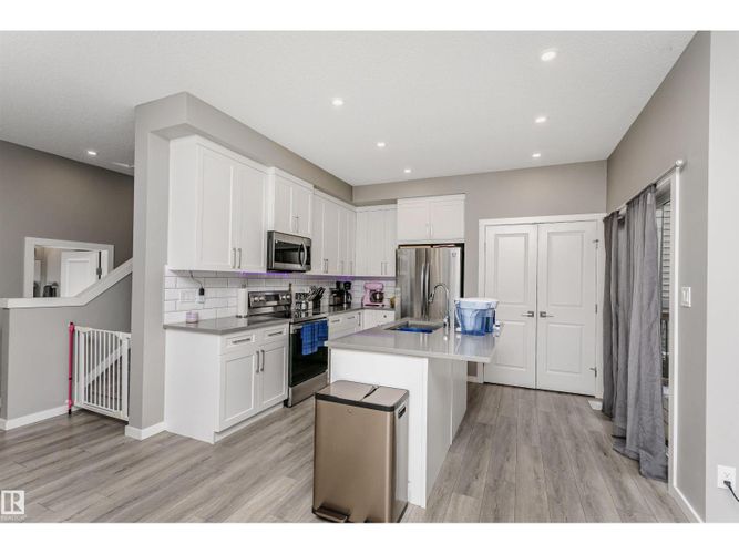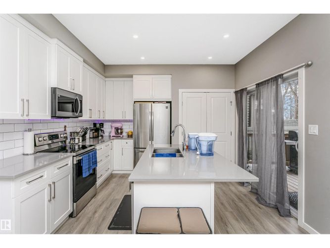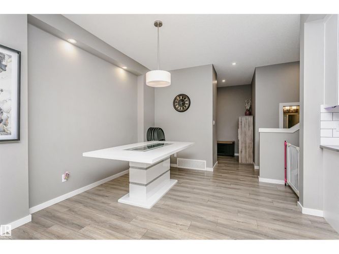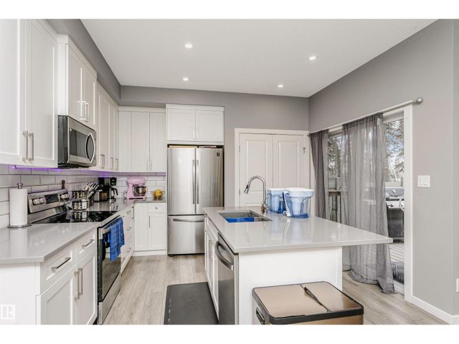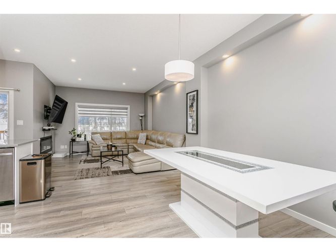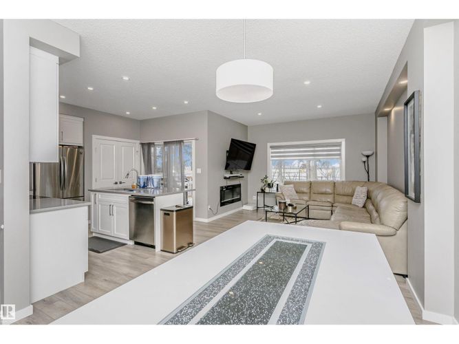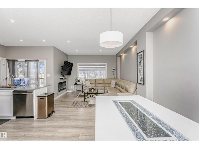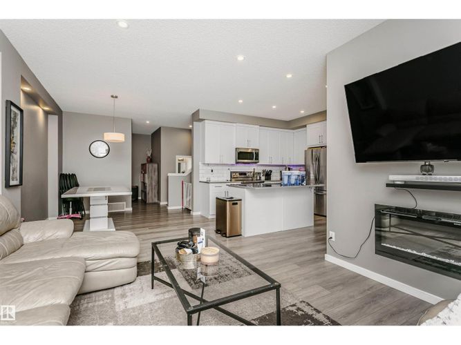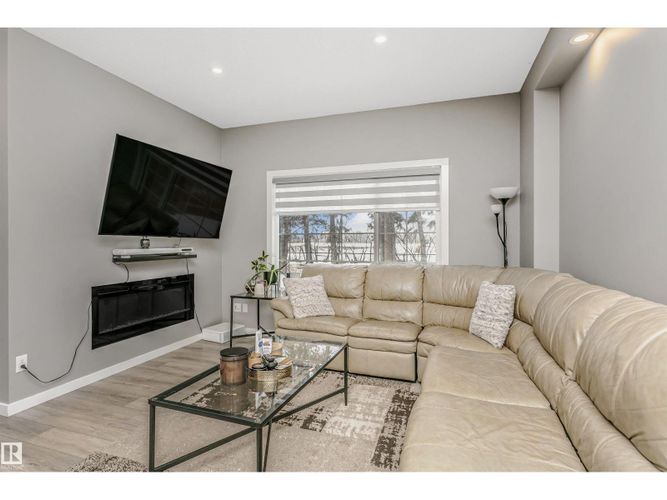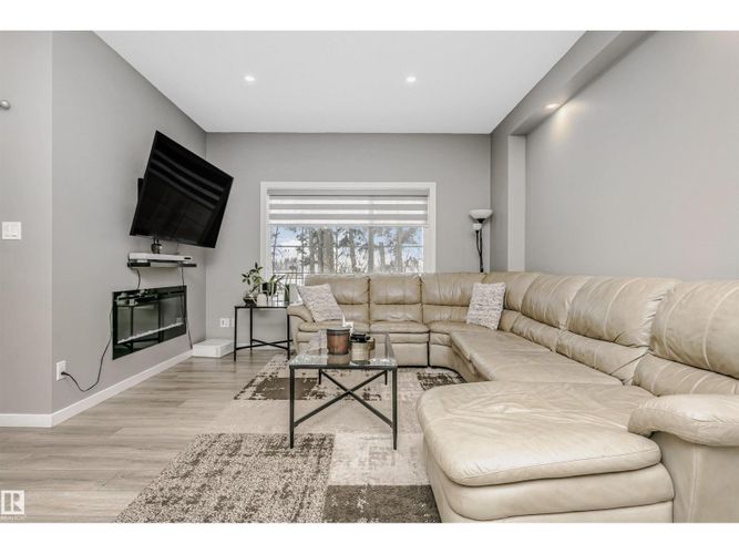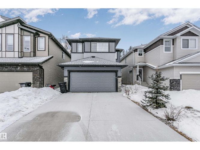 Welcome to this desirable community of Chappelle in SW Edmonton. This a charming 2-storey, 3 bedrooms, 2.5 bathroom home, which features a bright & open layout. On the main floor, designed for comfortable living & entertaining, you will find a kitchen w/ tall cabinets and quartz countertops, large island, pantry & S.S appliances. A good-sized dining room can fit 6-8 people table. The great room at the rear of the house has an electric linear fireplace & backs West onto a serene tree-line. It gives you a natural light & privacy abound. Upstairs you'll find a central bonus room separating the owners suite from the additional two bedrooms, main bathroom, & a laundry room. Primary bedroom has a large walk in closet, and ensuite with two sinks and walk-in shower! 9' ceilings on the main floor, triple pane windows, LED pot lights. Step outside to enjoy your fenced backyard, neighboring w/ a green space, and a deck, which is perfect for outdoor living. Double attached garage. Close to shopping, parks & schools (id:26452)