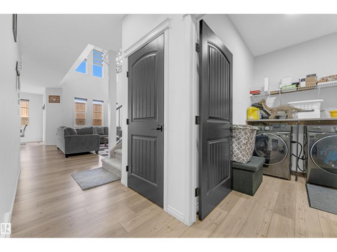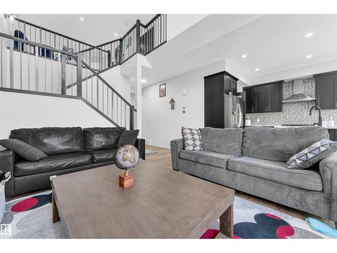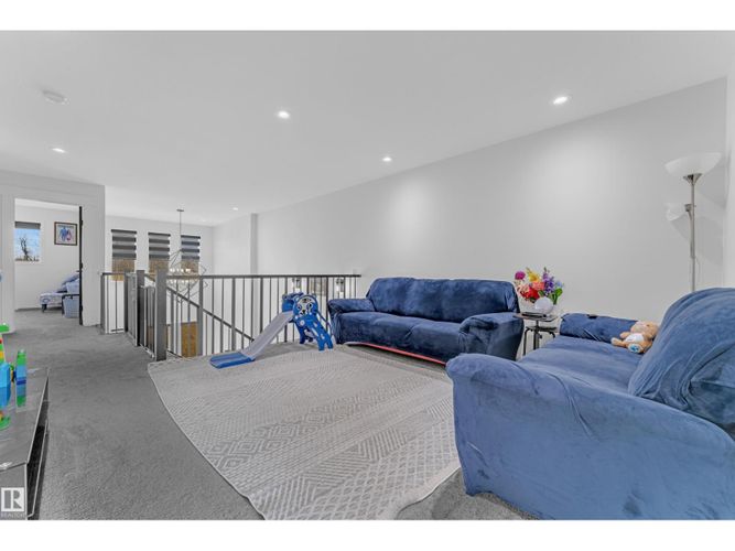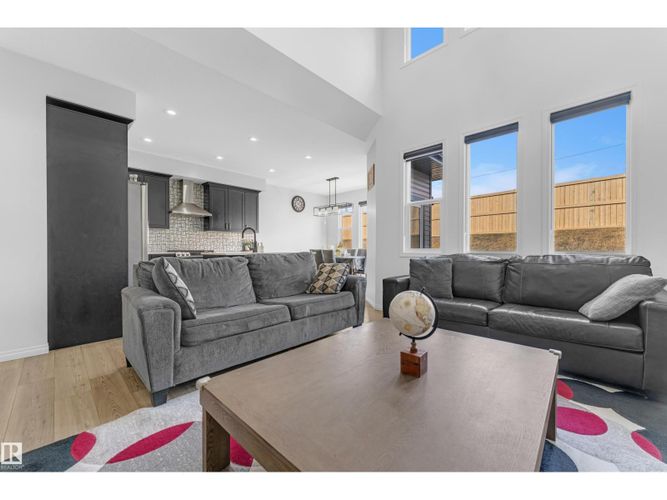 Beautifully maintained 2022-built home in the desirable Walker community of SE Edmonton! Offering close to 2,000 sq ft of bright, open-concept living, this home features a stunning open-to-above living area, vinyl flooring, and a main floor bedroom with a full bath—perfect for guests or extended family. The kitchen is thoughtfully designed with a pantry that includes rough-ins for a future spice kitchen, giving you added flexibility and value. The separate side entrance adds future potential. Upstairs offers a spacious bonus room, 3 bedrooms, 2 full baths. Enjoy privacy with no rear neighbours, plus central A/C and a water purifier system already installed. Ideally located close to schools, shopping, and all amenities including Walker Lake Plaza! (id:26452)
