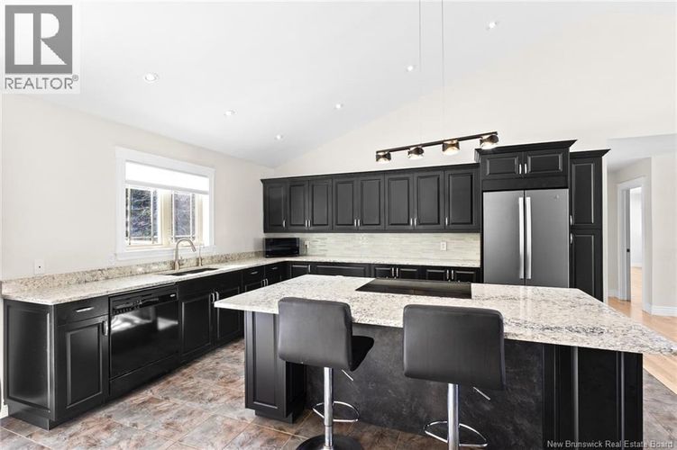 Contemporary Comfort Meets Rural Charm- Experience the best of both worlds in this gorgeous home. Nestled on over an acre lot within a prestigious, family-oriented community this impressive 3000+ square foot home home is located just minutes from the town of Oromocto, the NB Trail System, easy access to the Trans Canada Highway and a short 15 minute commute to Fredericton, Costco and Walmart. The home welcomes you with a spacious foyer that leads into a refined, semi-open-concept living area. The heart of the home is anchored by a magnificent floor-to-ceiling fireplace with a high-efficiency wood insert, creating a warm and inviting atmosphere. The kitchen is a standout feature, offering an abundance of cabinetry, extensive counter space, and an oversized island ideal for hosting and daily family life. This level also includes a laundry room and three well-appointed bedrooms, including a master complete with a private ensuite and a walk-in closet. The fully finished lower level features a sprawling family room, a full bathroom, a fourth and fifth bedroom(no closets) or use the space as an exceptionally large recreation room. Practicality is prioritized with a walk-in storage room, a utility room, and a walk-out entrance leading to the 24x22 attached double-car garage. The exterior is designed for leisure and privacy. The fully-fenced in backyard serves as a secluded retreat, featuring a private deck positioned for maximum sun exposure and a 24-foot above-ground pool. (id:26452)