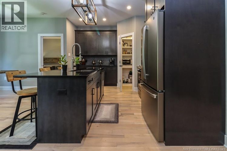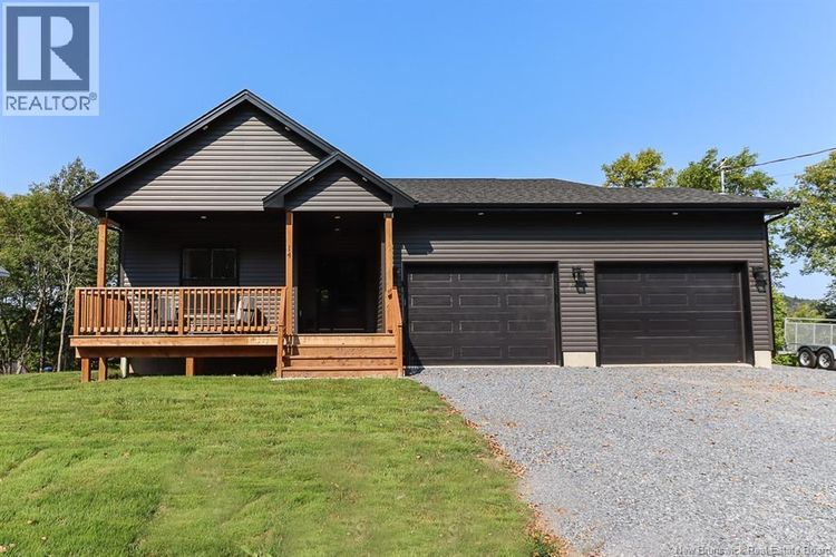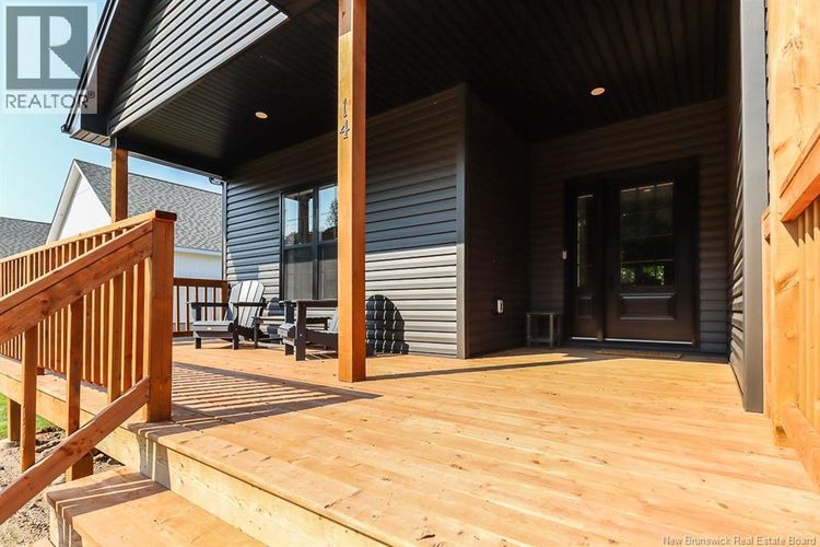 Welcome to 14 Sheraton Ave, a stunning new addition to the highly sought-after Scott Ridge Estates. This modern walkout bungalow offers nearly 3,000 sq ft of finished living space, including 1,536 sq ft on the main floor and a fully finished walkout basement. An oversized double garage with 12-foot doors provides both convenience and curb appeal. The thoughtful layout features 3+1 bedrooms and 3 full baths, with the primary suite on one side of the home and two bedrooms on the other for added privacy. 9-foot ceilings enhance the open living, dining, den, and kitchen areas, while a propane fireplace creates a cozy focal point. The kitchen is designed for gatherings with extensive lighting and a custom pantry. The lower level adds a spacious family room, full bath, and additional bedroom, perfect for guests or extended family. Outdoor living is equally inviting with a covered deck and front veranda. The exterior showcases modern dark siding, lending a sleek, timeless look. Located just minutes from the Kennebecasis River, beach access, and the Q-plex complex, this property combines modern comfort with recreational convenience. Built by RJ Scott Homes, known for their commitment to Quality Without Question, the home also includes: 7 years remaining on the Atlantic Home Warranty 2 owned Heat pumps (id:26452)