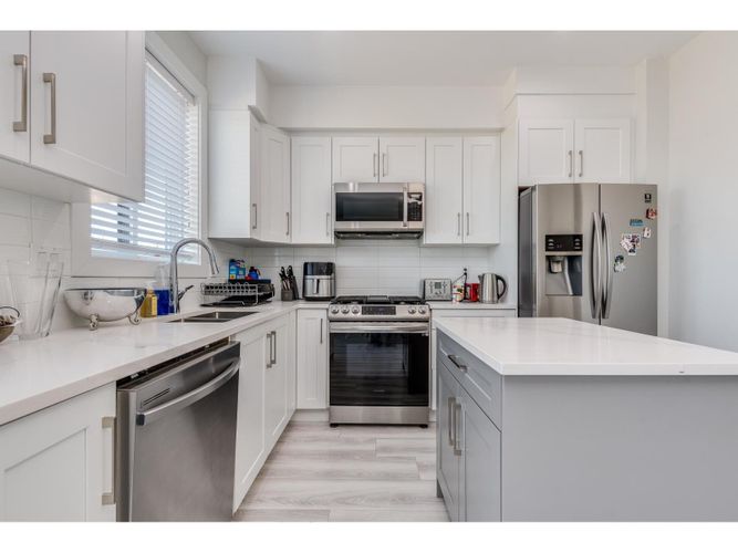 This spacious 3 bed / 3 bath,3 year old unit with 1492 sq ft,Double tandem heated garage currently part of it is used as a workshop area,plus extra storage area in the garage. Roof top deck approx 500 sq ft. Sundeck off the nook area. Bright Kitchen with gas Range, quartz countertops, engineered laminate flooring, frameless glass showers, custom wooden cabinets, stainless steel appliances,Clean and fresh, making this all ready for your family.Enjoy Air conditioning, Gas forced air furnace.Excellent value. Located in Langley City close to shops, restaurants, shopping, recreation and the newly expected Skytrain Station.