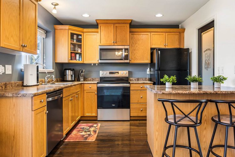 Welcome to Eden Park! Family & pet friendly, Unit #74 is open, bright, airy & spacious. Perfectly located in the complex with mountain views, featuring 3 beds up, 2.5 baths, rec room below which could also be a 4th bedrm, a yard, and balcony. The garage can fit a larger vehicle, and one more parking in the driveway. Beautiful laminate flooring, some new crisp paint, newer stainless steel stove & microwave, an eat-up bar, pantry, and the hot water tank is 2 years young - this home has been lovingly cared for. Enjoy the convenience of a gas bbq connection on the patio for all your bbq needs. The Primary Bedrm has a walk-in closet & 3 piece ensuite. A great, move-in ready townhome is waiting for you! Make this place your next home! (id:26452)