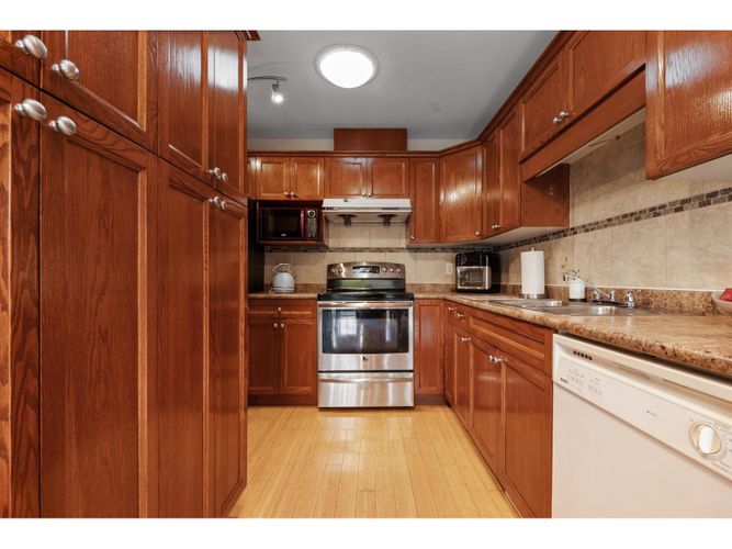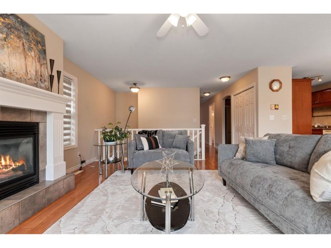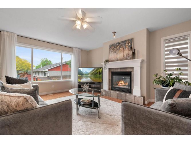 This spacious 1/2 duplex lives like a detached home-no strata fees! Located on a great family-friendly street, it features large windows that flood the home with natural light. The main level offers a roomy living area with a natural gas fireplace, a kitchen with ample storage, and a dining room that opens to a deck-perfect for BBQs. Upstairs has 3 bedrooms and 2 bathrooms, including a primary with ensuite and a private balcony for your morning coffee. The lower level has a separate entrance and is easily suited for an in-law suite. Enjoy outdoor living with a fenced yard, patios on both levels, and plenty of parking with a double garage and long driveway. A newer storage shed for all your gardening tools.