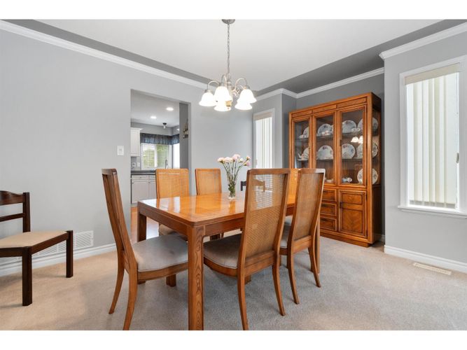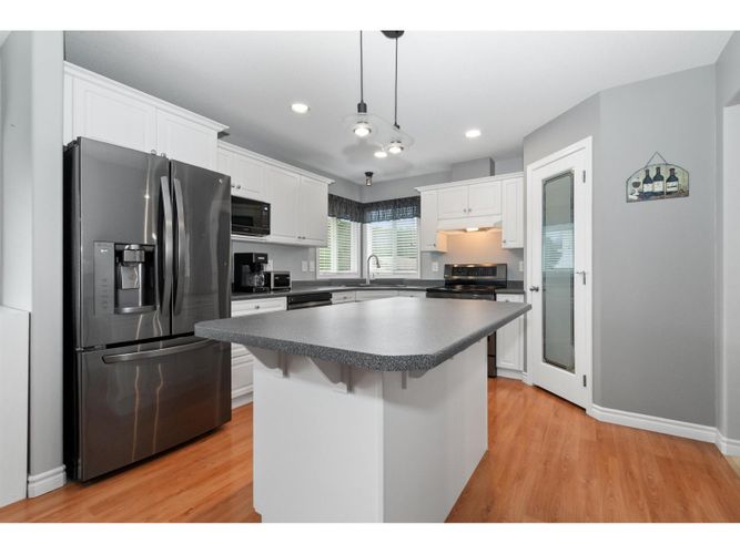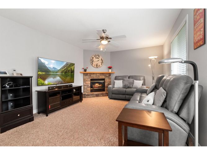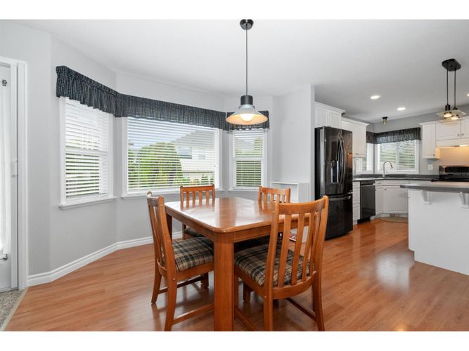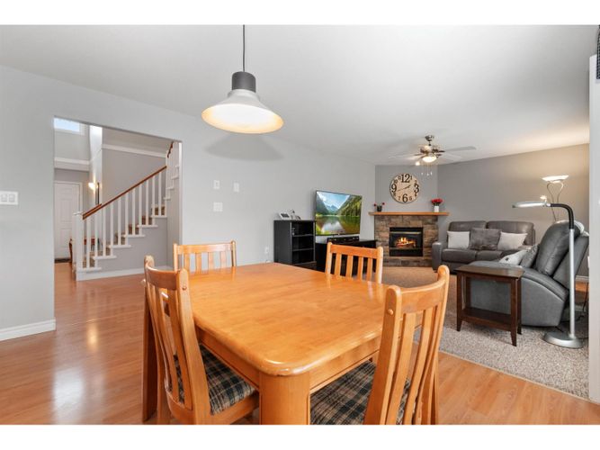 Welcome to this spacious 3,119sqft 2-storey home w/fin bsmt -perfect for your family! Main floor features a bright living room w/formal dining area (incl hutch alcove), a large white kitchen w/an island & plenty of cupboards & counter space. The kitchen opens to a generous eating area and a cozy family room with a natural gas fireplace, plus access to a large deck and patio. Large laundry room & 2pce bath round out the main. Upstairs offers 3 roomy bdrms, incl primary suite w/walk-in closet & ensuite feat soaker tub & separate shower. The bsmt is easily suitable, w/open-concept layout, 2 additional bdrms & full bath. Enjoy the private, hedged backyard w/storage shed, double garage & heat pump -all located on a quiet cul-de-sac close to schools, Vedder River fishing & trails. * PREC - Personal Real Estate Corporation (id:26452)