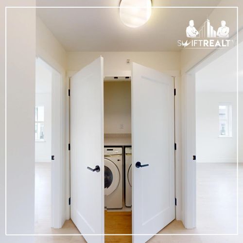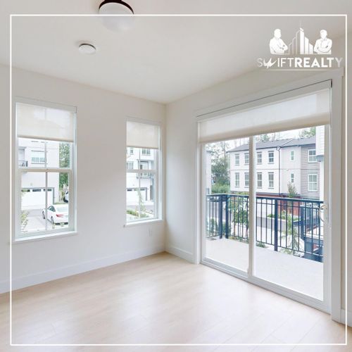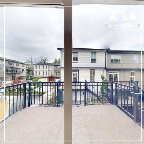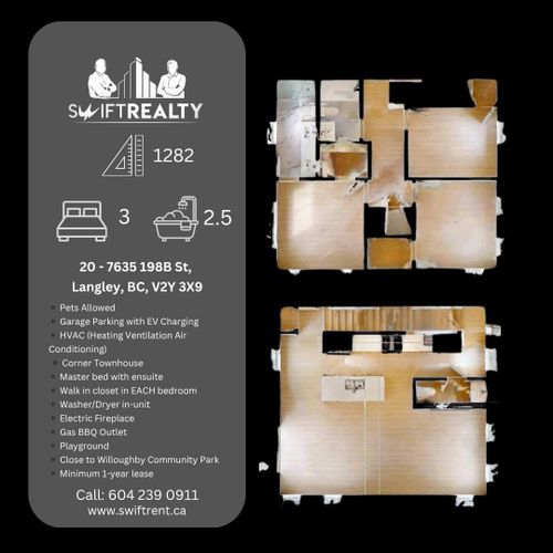 Welcome to Forum in Langley! This bright 3 Bed, 2.5 Bath corner townhouse offers an open layout filled with natural light. The modern kitchen includes a fridge, dishwasher, microwave, and gas BBQ outlet, complemented by laminated flooring throughout the upper levels and staircase. Enjoy year-round comfort with HVAC, an electric fireplace, and in-unit washer/dryer. The master bedroom features a walk-in closet and ensuite. The home also includes garage parking with EV charging. LOCATION: Just 7 mins walk to transit and steps from Willoughby Community Park, close to restaurants, cafes, and a short 10-min drive to Willowbrook Shopping Centre, Walmart, Superstore, Canadian Tire, and nearby schools. *$3,500/month only for the first 6 months! Rent will return to $3,800/mo. after 6 months.