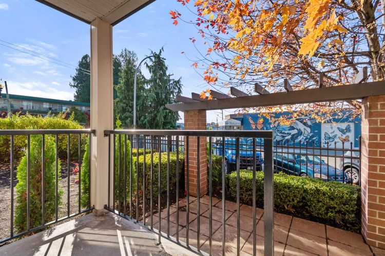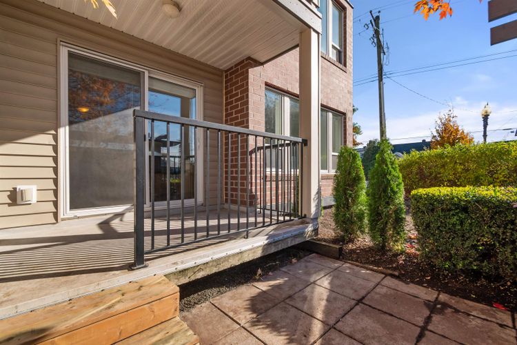 Prime location and incredible value with this beautiful like new 2 bed 2 bath ground floor corner unit! Primary bedroom has full ensuite and double sided walk-through closet. Bright unit with plenty of windows. Lovely balcony and patio to grow herbs/flowers and enjoy sunsets! Entire complex is newly and attractively wrought iron fenced/ gated. Very walkable distance from the amazing and popular new 1881 District. Discover nearby every kind of shopping and all levels of schools. Underground and street parking available. (id:26452)