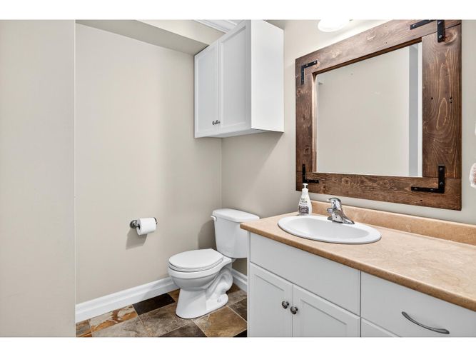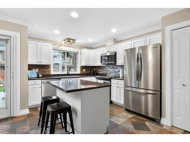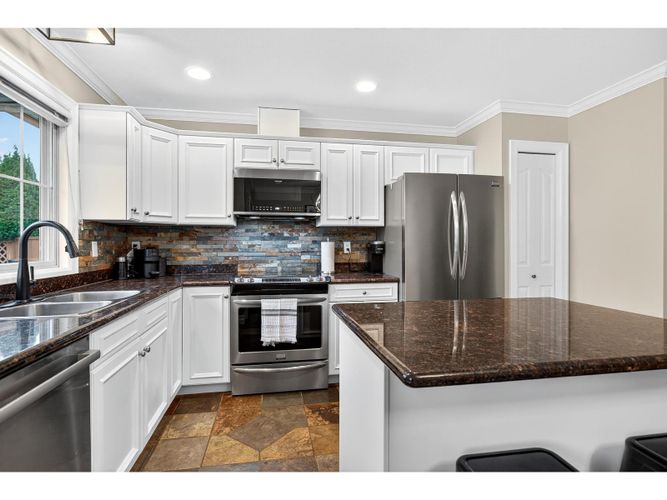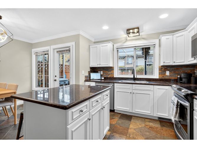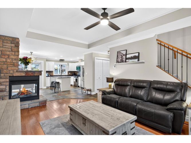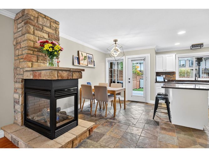 Beautiful 2-storey w/ bsmt in Webster's Landing, steps to Vedder River, Rotary Trail & Peach Park! Immaculate 4 Bed/4 Bath w/ fresh paint, slate tile, updated lighting, crown molding, tray ceiling & stunning 3-sided gas FP. Kitchen features induction stove, S/S appliances, new Bosch DW & custom ShelfGenie Lazy Susan. Primary w/ ensuite + W/I closet. Bedrooms have mountain views; Murphy bed/desk in rec room. South-facing yard w/ turf, privacy fence, extended patio & 208 sq.ft covered area w/ glass roof + sunshades. Insulated dbl garage + full driveway (4 car parking), ProSlat system, lockers, 11-ft workbench & MyQ smart opener. Strata incl geothermal heat/cool + water + clubhouse access. Pride of ownership throughout! New roof next spring, paid by seller! Open House Nov.16 2-4PM * PREC - Personal Real Estate Corporation (id:26452)