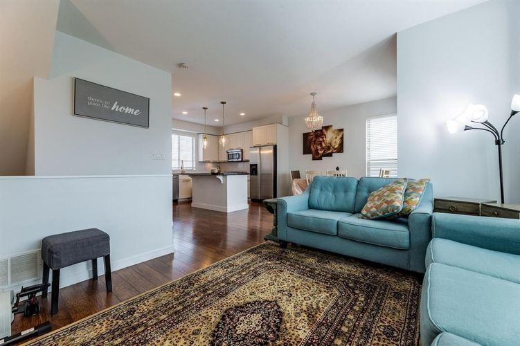 Bright CORNER UNIT at Argyle Townhomes offering 3 bedrooms, 3 bathrooms, and rare privacy backing onto open farmland with peaceful views. Extra windows throughout provide great natural light. The main floor features an open layout with 9' ceilings, a spacious kitchen with stone counters, white cabinets, gold accents, and updated lighting. Bonus flex area perfect for an office or kids’ space. Enjoy a private balcony with gas hookup for year-round BBQs, plus easy side access to the yard and patio. The double side-by-side garage offers excellent storage and room for larger vehicles. Pet-friendly complex with dog-waste stations, a kids’ play area, and ample visitor parking. Convenient location close to UFV, Hwy 1, Abbotsford Centre, shopping, schools, and more.