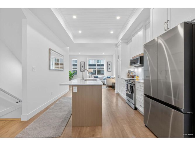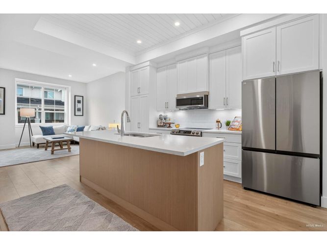 Your Forever Home Awaits! This stunning home sits in one of the most sought-after communities, surrounded by 10 acres of greenspace and 4 km of nature trails, offering perfect blend of tranquility & modern comfort. Step inside to a spotlessly maintained open-concept layout featuring a bright living and dining areas, & sleek gourmet kitchen with developer-upgraded Samsung glass-top range, matching fridge,over-the-range microwave, plus a new garburator for added convenience. The EV plug is already installed & ready to use! Enjoy outdoors from your large deck with a bonus gas BBQ hookup with quick access to the playground just steps away. The primary bedroom boasts a walk-in closet & a spa-like ensuite with a walk in shower. Two additional bedrooms & a full bath . Low $70/month HOA fees.