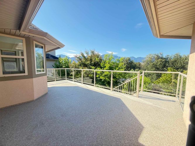 HOME WITH WATER & MOUNTAIN VIEW! Professionally renovated $100K spent. South facing 5 beds, 3 baths. Brand new washer/dryer, dishwasher, fridge, window blinds, pot lights, hot water on demand, paint, laminate floors, and much more. Family room and kitchen opens onto an expansive private deck with fabulous unobstructed mountain views. Walking distance to Chilliwack Creek. 2 gas fire places, 3 beds, 2 full bath on the main including huge master bedroom with large en-suite with a soaker tub & separate shower. Laundry room on main. 2 or 3 beds BSMT with a massive living room in the BSMT. Rough-in plumbing and electrical for a new kitchen with separate entrance. 2 car garage. 5 mins to town. Located in a street with cul-de-sac (id:26452)
