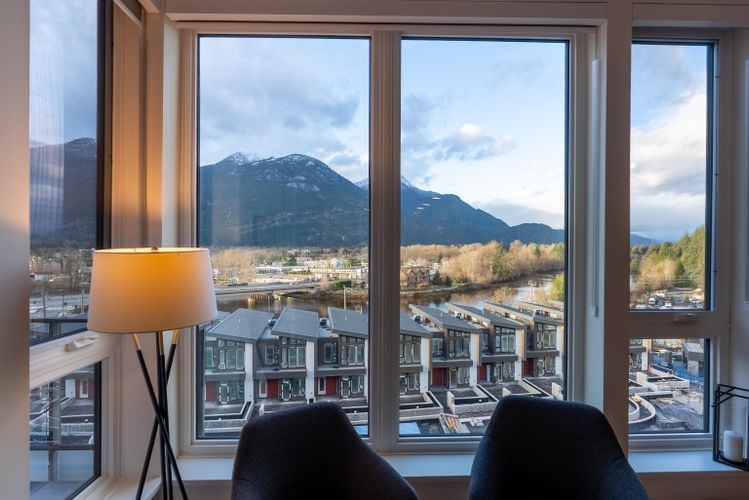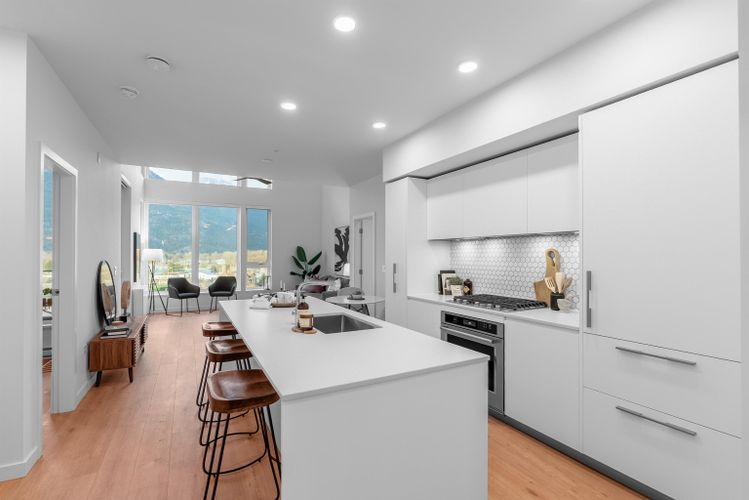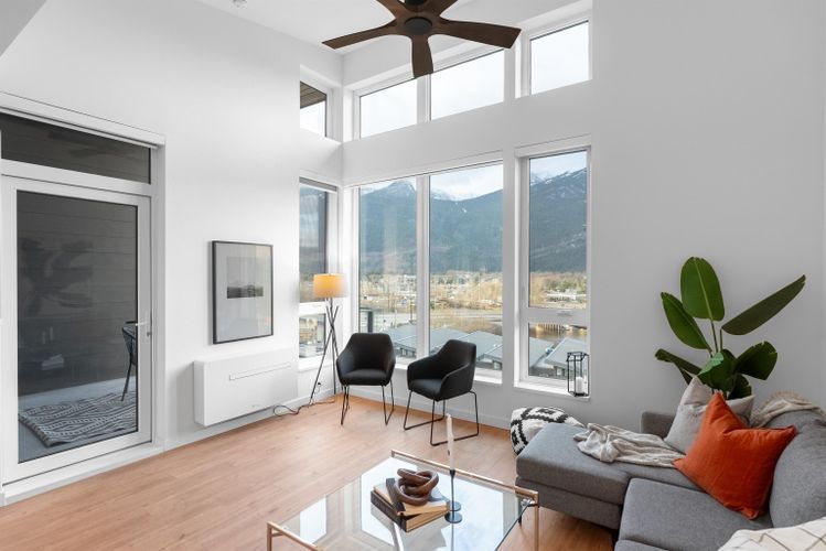Elevated penthouse living meets Squamish’s modern mountain lifestyle in this brand-new 2-bedroom + den, 2-bath home at Redbridge. Soaring ceilings and expansive windows fill the space with natural light and showcase striking mountain views, while the versatile den is ideal for a home office or guest space. The home features refined finishes, spa-inspired bathrooms, and a sleek Italian kitchen by Inform with a gas cooktop and integrated appliances. Enjoy air conditioning for year-round comfort, private massive storage for bikes and outdoor gear, and a spacious balcony perfect for everyday relaxation. Redbridge residents enjoy premium amenities including a fitness and wellness centre, co-working spaces, secure bike facilities, and landscaped outdoor areas—just steps from Downtown Squamish.