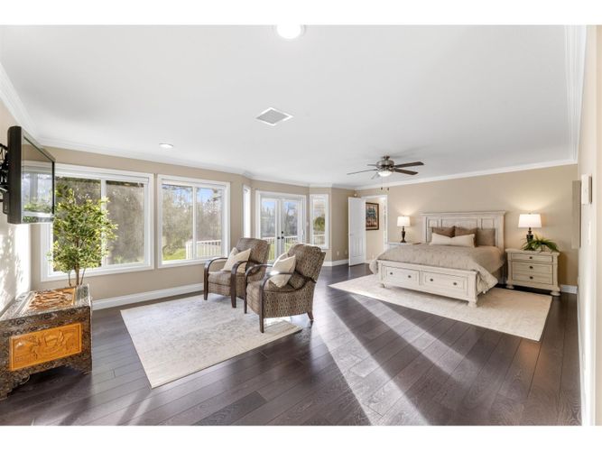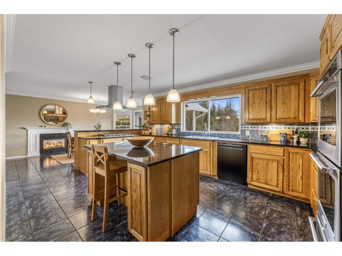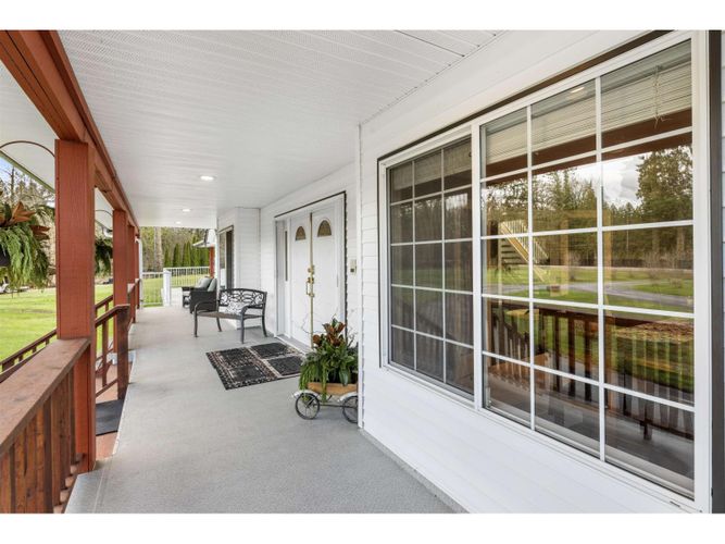 Set back down a long, estate-like drive, this meticulously maintained 7,549 sq/ft residence offers a sanctuary of scale and privacy on 4.2 acres in Fort Langley. The 3,858 sq/ft main floor provides seamless rancher-style living perfect for entertaining, featuring a stately living room with framed views over the creek, an impeccable oak kitchen and a large dining room. The walk-out basement serves as a luxury entertainment wing with a theatre area, pool parlour, wet bar with wood stove, sound-insulated studio, and 45' gym. Recent updates include a newer roof (2022) and newly ducted A/C (2023). The private manicured acreage features 1.35 acres of protected riparian area, easy access to Fort Langley village, waterfront trails, cafes, and restaurants. Quick drive to Hwy 1 east or westbound.