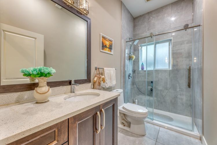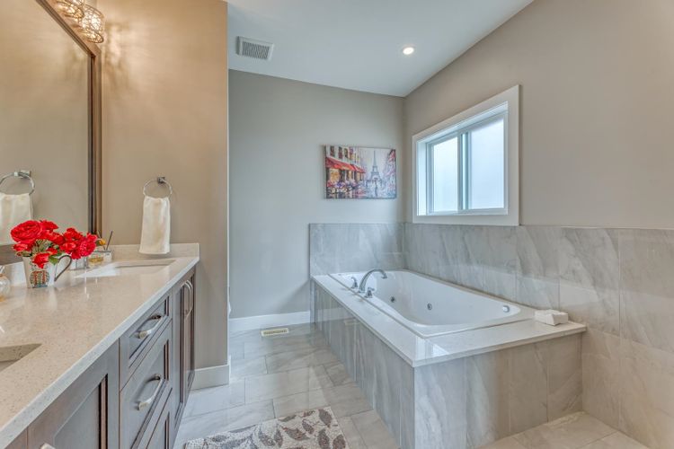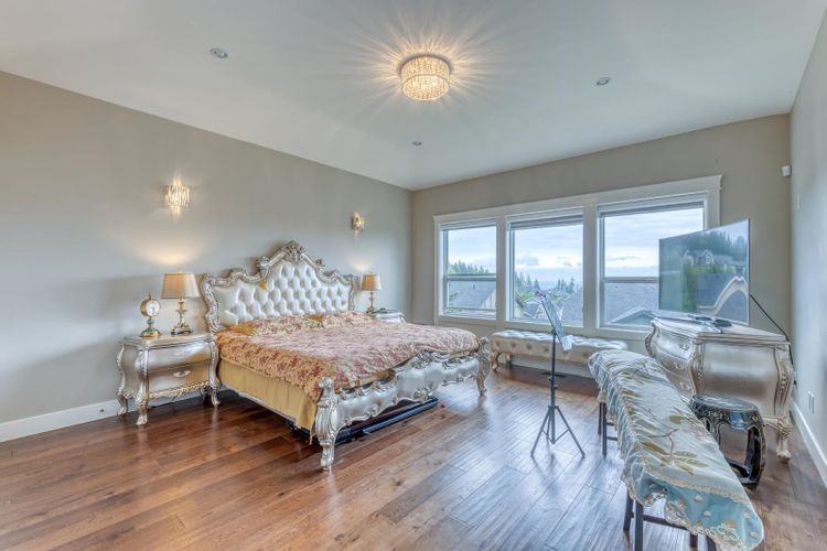 Executive custom-built home with VIEW and A/C. Open main level has porcelain floor throughout. Great room with high ceiling and grand mouldings. Chef's gourmet kitchen offers extra-large island, top-line S/S appliances, pot filler faucet and a functional WOK kitchen with window. Balcony comes with gas outdoor fireplace. A den/bedroom next to a full bath on main is rare to find. South-facing Master bedroom has 5 pieces luxury ensuite bathroom and a gigantic balcony with panoramic valley view. The other 3 bedrooms up are all decent-sized. In addition to a cozy rec room for family entertainment, the Walkout Basement boasts a super bright 2 bedroom Legal Suite with 10' ceiling and a separate entry which goes directly to the private yard with garden beds. Double garage is EV ready.