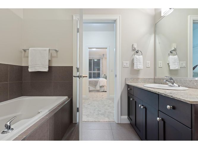 Beautiful 2 bed/2 bath + den top floor condo in Ameera Place, prime location minutes to Garrison Crossing, schools, shopping, Cheam Leisure Centre, Vedder Rotary Trail and Cultus Lake. 9' ceilings throughout and stunning vaulted ceilings in the main living space with ample windows letting in lots of natural light. Open concept kitchen with stainless steel appliances and eating bar. Spacious primary bedroom with walk in closet and ensuite with separate soaker tub. Lots of space with a 2nd bedroom, den and storage room. Secure underground parking stall & spacious balcony complete the package!