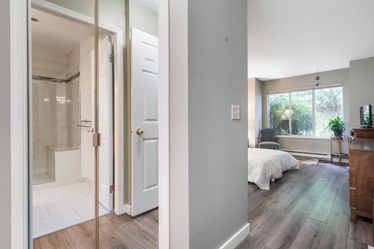 PREMIER 55+ "Chartwell Green" in heart of Walnut Grove! Main Floor PRIMARY bedroom has large walk in closet & ensuite with fully renovated shower! 1447Sqft 3 bdrm, 2 bath w/soaring vaulted ceiling in the living rm/dining rm & gas fireplace. Enjoy the bright East facing kitchen with cozy eating area. Upstairs TWO more generous bedrooms for guests or office & full bath! Private backyard w/awning for entertaining. Recent upgrades include blinds, vinyl flooring, gas fireplace, paint, toilets & taps. Single Garage + Parking space out front! Relax w/ resort like amenities incl, outdoor saltwater pool, hot tub, games room, active clubhouse, workshop, library & RV parking. Pets welcome (16") w/restrictions. Short walk to shopping, restaurants, banks, more. View today!