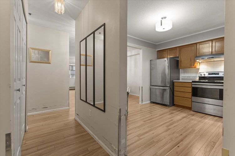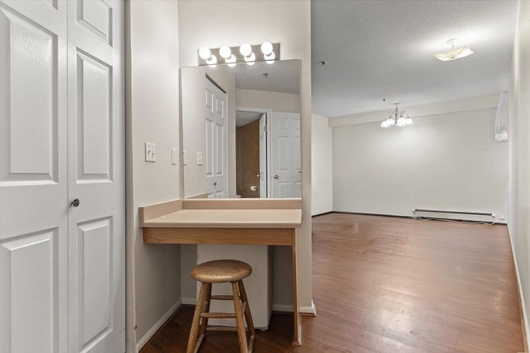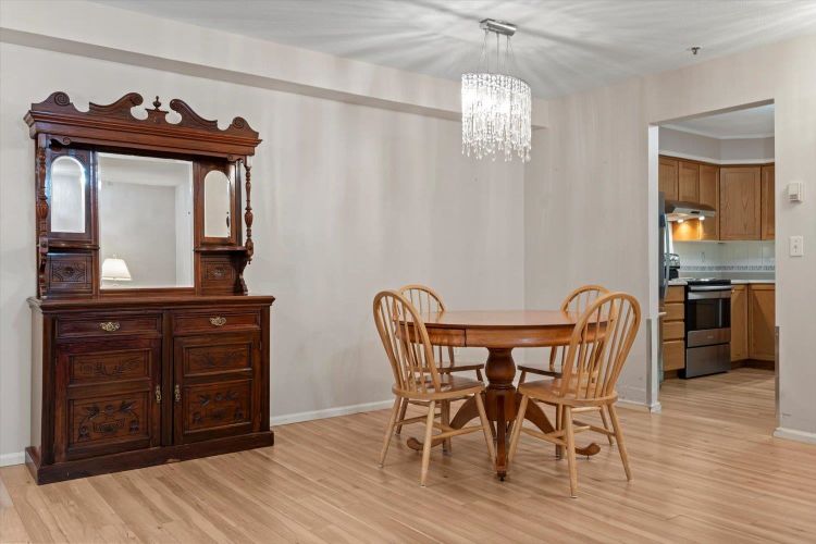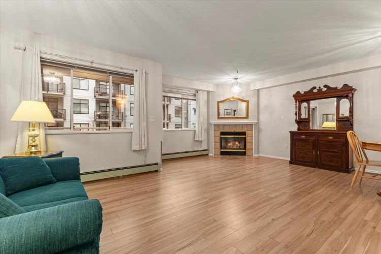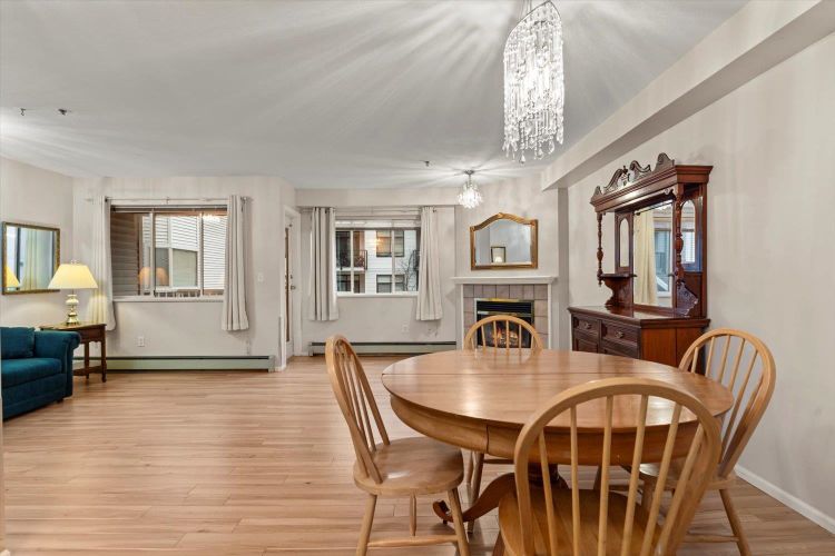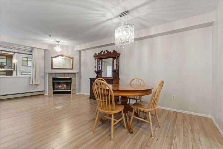 Rosewood Gardens is conveniently located within WALKING DISTANCE to transit, Leisure, Shops, Restaurants & the Hospital. This SPACIOUS 2 bed/2 bath unit, one of the LARGEST floor plans in the building w/over 1300 ft², offers EXCELLENT VALUE! While it could benefit from a bit of TLC, it is priced accordingly, allowing buyers to customize & add their personal touch! Large kitchen w/tons of cupboards & a nook area. Dining & Living rm feature a cozy fireplace. Oversized primary bed w/WI closet & ensuite. Other features incl. laundry rm & private balcony. The well maintained building has seen major updates. Strata fees INCLUDE: Heat (radiant hot water) natural gas, garbage, water & snow rem. Besides peace of mind, this 55+ community offers a common rm w/pool table, guest suite & much more!