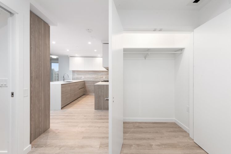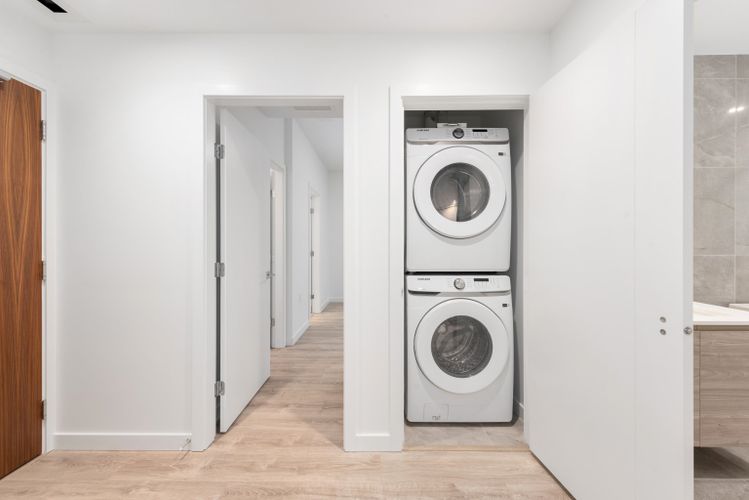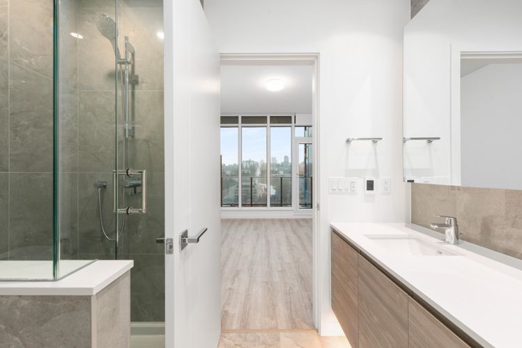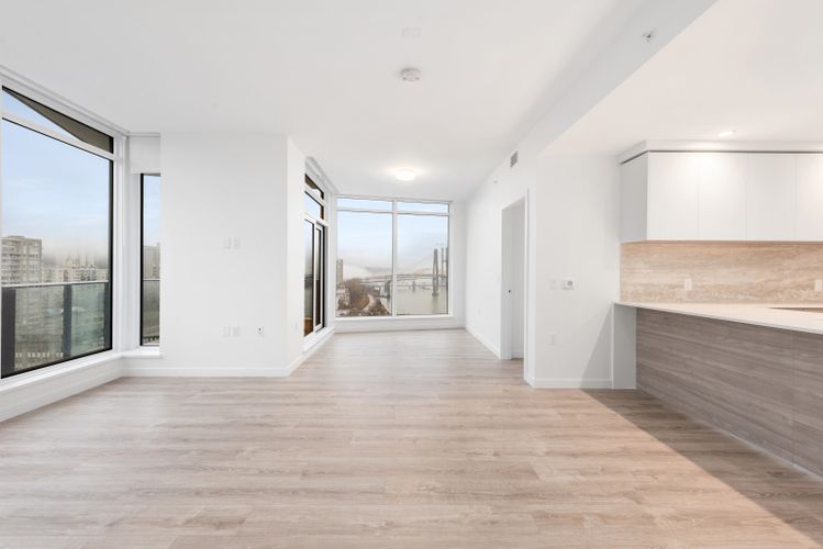 Bright 3 Bedroom, 2 Bathroom corner home with unobstructed panoramic views in PIER WEST by BOSA. Thoughtfully designed layout with wide plank laminate flooring and Air Conditioning. The sleek chef-inspired kitchen features; Bosch appliances w/ gas cooktop, wall oven, speed oven, solid slab Caesarstone waterfall countertops, matching backsplash & generous storage. The Bathrooms feature in-floor heating for added comfort & ensuite w/ double sink, under-cabinet lighting. Located just steps from skytrain, shops & services, this home ensures seamless access to City life. Amenities include; Concierge, Fitness centre, Private dining lounge, steam & sauna. 1 EV Parking & 1 Storage.