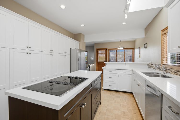 Located on a 50’ x 130’ lot on a quiet, tree-lined street in the prestigious Mackenzie Heights neighbourhood, this 3,297 sqft, air-conditioned residence offers 3 levels, 5-beds & 3 updated baths. The main floor boasts: H/W floors throughout; gas FP in the family rm; wood FP in the living rm; formal dining rm; & updated kitchen w/ skylight, S/S appliances & eating area w/ access to rear deck; & primary bed w/ spa-like ensuite & W-I-C. Above offers 2-beds, 1-bath. Below offers 2-beds, bath, kitchen, living rm, & huge rec room. Fenced yard & double garage w/ lane access. Close to the retail village along Mackenzie & 33rd, Balaclava Park & Kerrisdale Village w/ easy access to Pacific Spirit Regional Park & UBC.