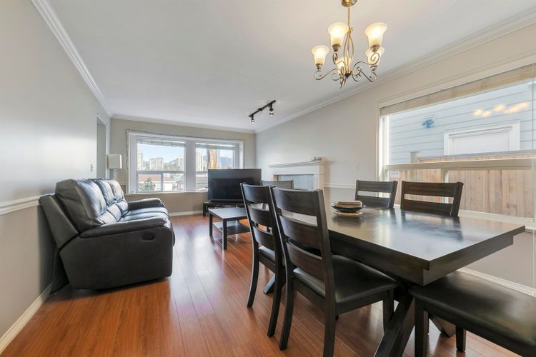 MUST-SEE! A thoughtfully UPDATED front DUPLEX with panoramic north MOUNTAIN VIEWS and a layout that truly works for family life. Entertain in the open living/dining area, cook in a separate kitchen while kids play in a SEPARATE BEDROOM on the MAIN, then step out to your SPACIOUS patio for BBQs. Upstairs, three GENEROUS bedrooms and two full baths give everyone privacy, while SKYLIGHTS (2021), ROOF (2020), & A/C keep the home comfortable year-round. Enjoy the EXTRA 700+ sqft crawl space - perfect for keeping your home clutter-free. Retreat to a large primary with beautiful CITY and MTN outlooks. Park easily with a detached garage + extra front stalls, minutes to BCIT, Brentwood, Metrotown, COSTCO, transit & quick access to HIGHWAY 1. $0 Maintenance Fees!