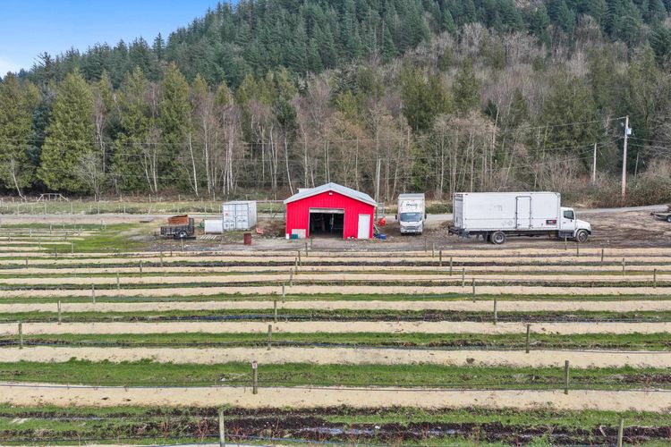 PREMIUM BLUEBERRY FARM! Nearly 20 Acres in Matsqui with high producing Duke variety blueberries. Approx. 18 Acres planted, poles, wires, double drip irrigation, ready for machine harvest. Well drained property access on Gallagher Rd & Little St, set in a private, quite location with AMAZING views. Drilled well with abundance of water. The home is 1431 SQ/FT rancher with 951 SQ/FT unfinished basement which sits perched up higher is tenanted. City of Abbotsford mapping shows the home site out of the floodplain. Detached garage beside the home. Property also features a 1200 SQ/FT machine shop for all your tools. High producing, well-kept blueberry fields like this seldomly hit the market. Seller would entertain lease back if Buyer would like. DO NOT ENTER WITHOUT APPOINTMENT.