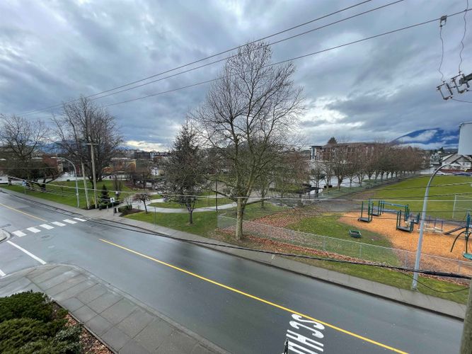 Welcome to your next great home minutes away from downtown Chilliwack! This TOP FLOOR UNIT is perfect for those wishing to upgrade into an affordable, sunny home. Quiet neighbours, a well-run strata, and CENTRAL LOCATION. Walking distance from downtown Chilliwack's bustling District 1881 with shopping and entertainment less than 5 minutes away, yet far enough away to not be noisy or too busy. This unit overlooks Central Community Park meaning quiet, peaceful views year-round. This unit comes with multiple BONUSES: Boasting secure underground parking, an expansive in-unit laundry room, new laminate flooring, HUGE walk-in closet, open concept floor plan, and meticulously cared for upgrades throughout including a NEW BATHROOM. Low strata fees and ample sunlight in this great home!