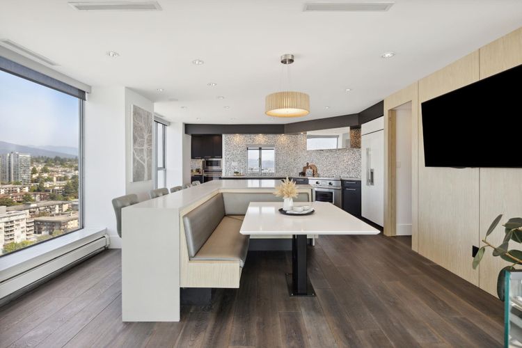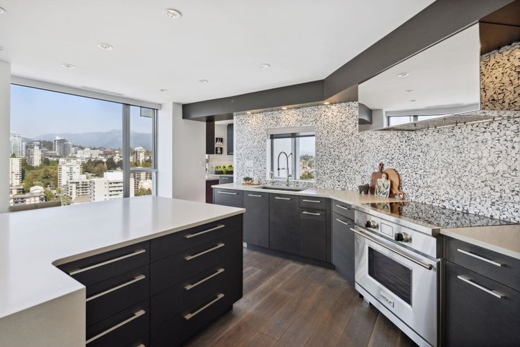 Indulge in unparalleled luxury with this penthouse at the Observatory. Floor-to-ceiling windows offer sweeping city and harbour views. This extensively renovated 2328 SF home spans four levels and features over 1500 SF of outdoor terraces. Highlights include a gourmet kitchen with a butler’s pantry, 12-foot ceilings, custom built-ins throughout, and four private outdoor spaces. The layout has two bedrooms on lower level and a top-floor master suite with a walk-in closet and spa-like en-suite. Enjoy vibrant Lower Lonsdale living with shops, restaurants, and entertainment at your doorstep. Includes 3 parking spots, ample storage, plus stunning gardens, a fitness centre, and a pool—it’s like living in a resort!
