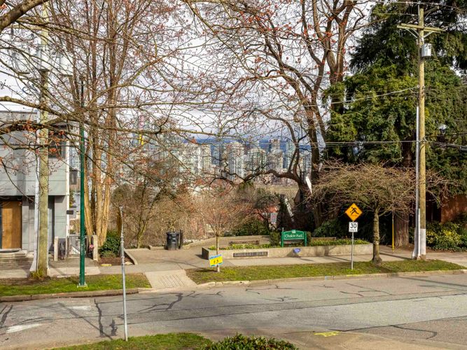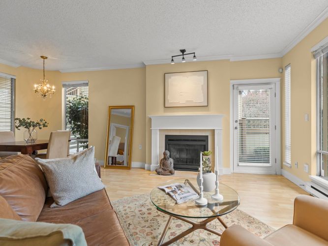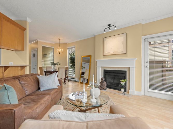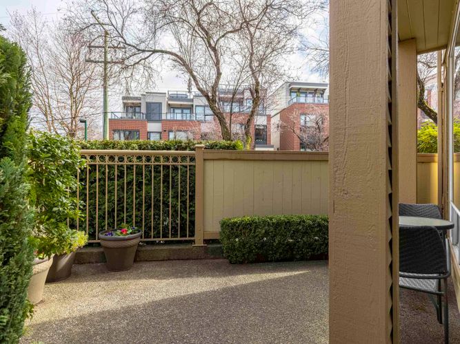 Welcome to Windgate at Choklit Park - overlook one of the cutest corners in the city in this 2 bed + 1.5 baths townhouse style home. It has a spacious layout perfect for relaxing on cozy nights in front of the fireplace & entertaining friends. So bright and cheerful with big windows and over height ceilings. Great views of downtown, mountains & cherry blossoms soon! 3 fenced patios offer options for outdoor living. Street entrance for easy access. No need for a car w/ 100 walk score, excellent transit, and local bike paths. Walk to False Creek Seawall, Granville Island, and South Granville shopping area incl boutiques, cafes, and restaurants. This home has in suite laundry, 1 pkg, 1 storage + bonus outdoor storage. You have to come see it for yourself!