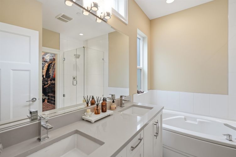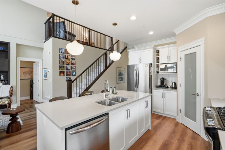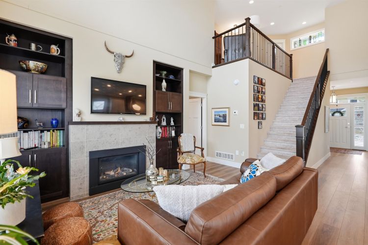 Welcome Home! Meticulously maintained by its original owner, this charming 2 level home offers excellent living space at almost 1,800 sf. Situated on a quiet corner lot, it enjoys an abundance of natural light amplified by its interior soaring ceiling. With a comfortable open plan on the main, there’s an add'l powder room, private den & large primary suite. Updates include custom built-ins, really pretty light fixtures, California shutters throughout & custom mouldings. Upstairs enjoys 2 good sized bedrooms, a 3rd full bathroom, open office area & add'l storage. Exterior updates include an extended back deck with built-in outdoor fireplace & BBQ as well as custom low maintenance landscaping. Double garage & an insane amount of accessible crawl space.