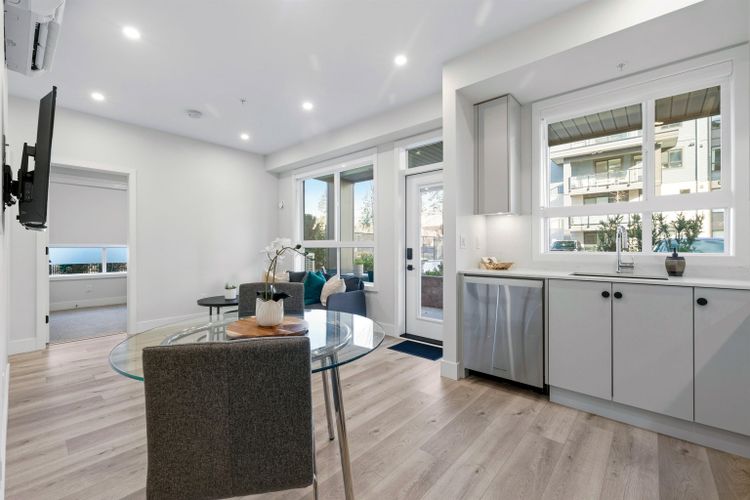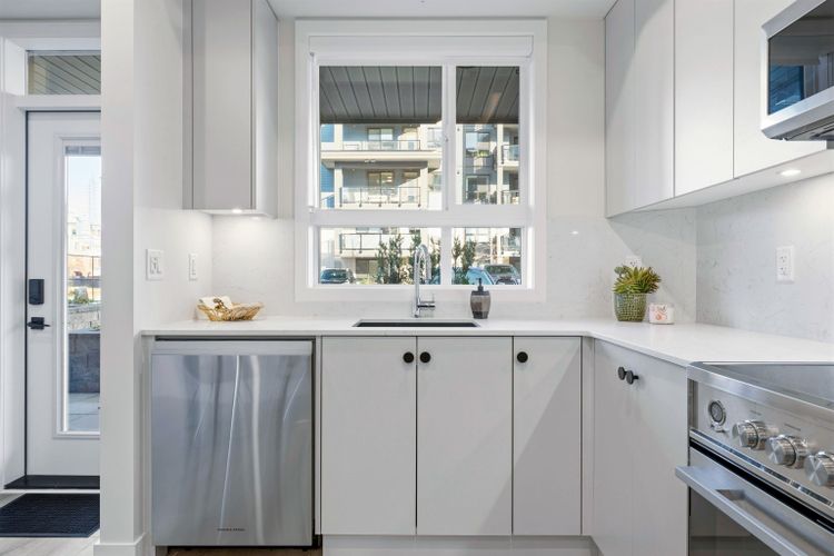 Experience the lifestyle of Garrison; one of Chilliwack's most walkable & vibrant communities. This meticulously maintained, move-in ready ground level CORNER home offers the perfect blend of comfort & convenience. Pet friendly & ideal for an active lifestyle, your steps from the Vedder River, Rotary Trail, The Eddy, Cultus Lake & all your shopping needs including restaurants, Cheam Center, Amble/Starbucks, services, pharmacy & groceries. Filled w/natural light from an abundance of windows, this bright, like new home features upgrades such as Fisher & Paykel s/s appliances, quartz counters w/matching backsplash & heat pump with A/C. Rare bonus of 2 secured u/g parking spots & storage locker. Leash up the pets & step straight out from your patio to enjoy Garrison at it's finest.