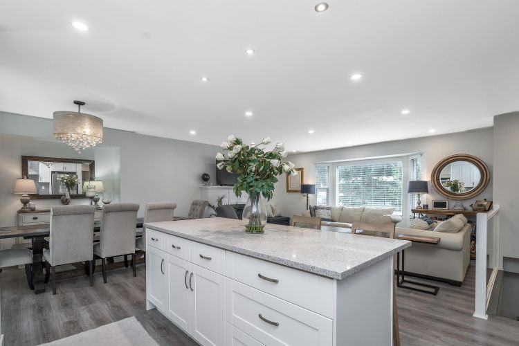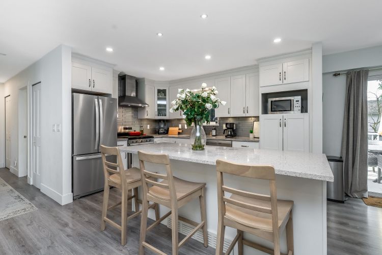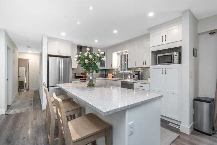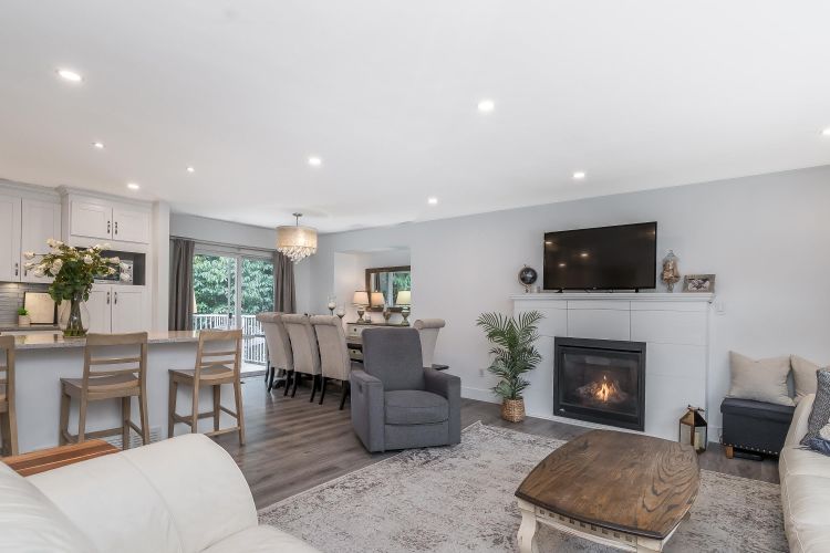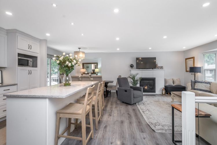 Beautifully renovated family home in desirable Brookswood! Bright open-concept main floor with laminate flooring, modern lighting, updated windows, and a stunning quartz kitchen with breakfast bar and quality appliances. Cozy gas fireplace anchors the inviting living space. Upstairs offers 3 bedrooms and 1.5 baths, including a primary with 2-piece ensuite. Downstairs features office/flex space plus a private 1-bed suite with courtyard, ideal mortgage helper or in-law space. Expansive, neatly landscaped backyard with fire pit and room to play. New roof (2025) and furnace (2024). Walk to schools, parks, and recreation—move-in ready!