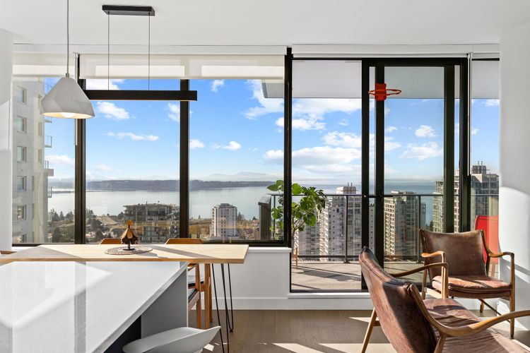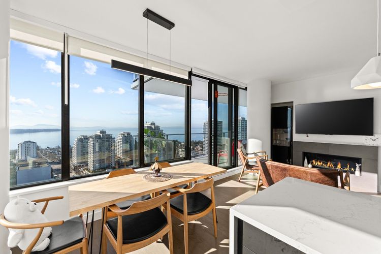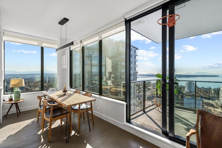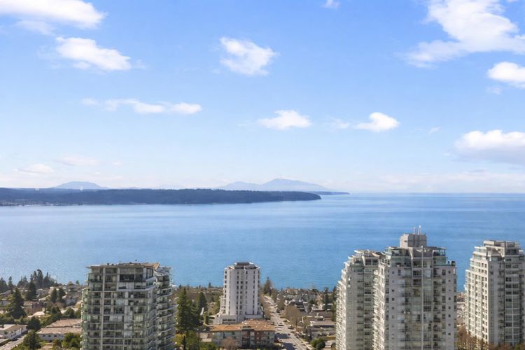 Experience elevated coastal living at Soleil, in the heart of White Rock. Perched on the 21st floor with a prized south-facing exposure, this stunning residence offers breathtaking, unobstructed panoramic OCEAN VIEW from sunrise to sunset. Thoughtfully designed, this spacious 2-bedroom plus bedroom-sized flex home provides exceptional versatility-perfect for a home office or guest room. The modern open-concept kitchen features premium Bosch appliances, and elegant finishes throughout. Meticulously maintained and in almost brand-new condition, this home shows beautifully. Comes with TWO side by side EV ready full-size parkings and one storage locker.Steps to shops, restaurants, beach, and all that vibrant White Rock living has to offer. Luxury, location, and Lifestyle-this one has it all.