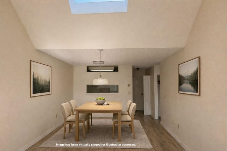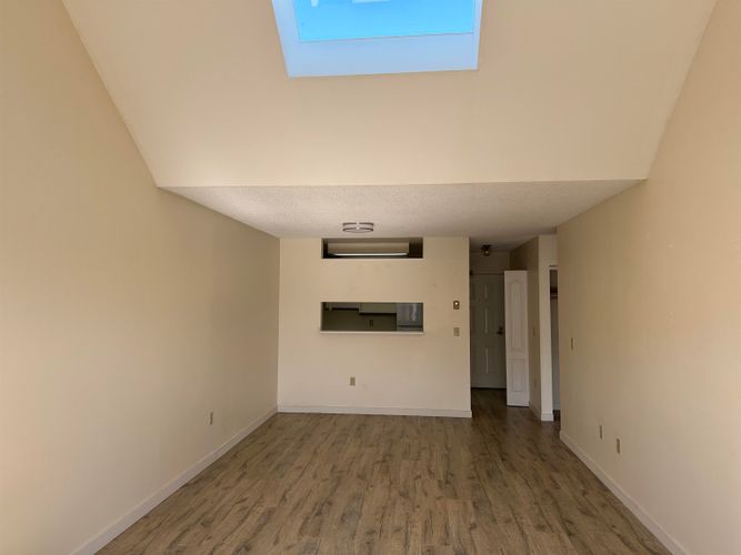 Don’t miss this beautiful, move-in-ready, south-facing, top-floor, spacious 1-bedroom, 1-bath home built by Polygon. This bright unit features an open concept layout with new laminate flooring throughout, vaulted ceilings, and a skylight in the living room. You'll appreciate the large in-suite laundry, equipped with a full-size washer and dryer. The efficient floor plan is enhanced by a generous, quiet, sunny balcony that offers a private setting. Centrally located, this home is just a 15-minute walk to the Canada Line and is close to Minoru Park, Richmond Centre, schools, and public transit. The price includes one parking space and Clubhouse access, with low strata fees and ample visitor parking. This property is perfect for first-time buyers or investors, making it your ideal home.