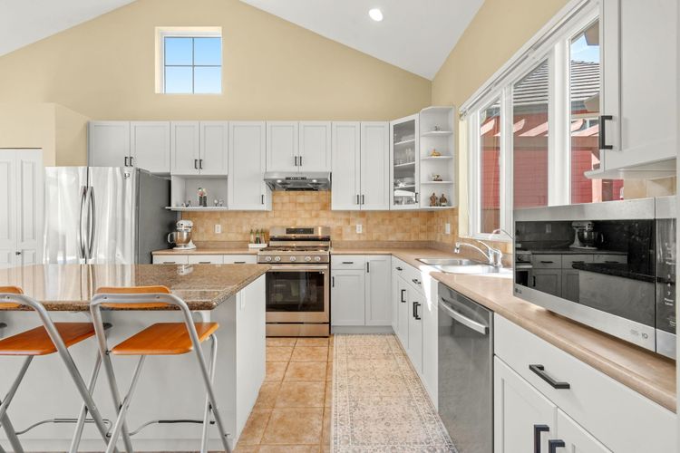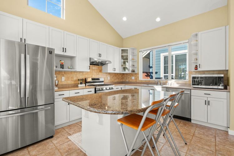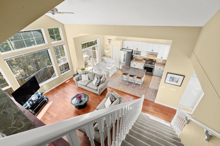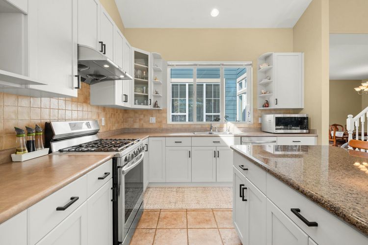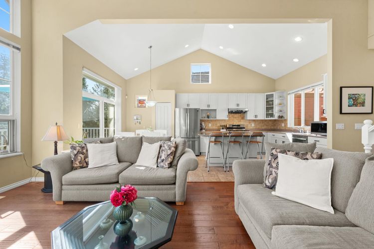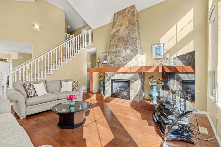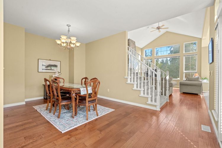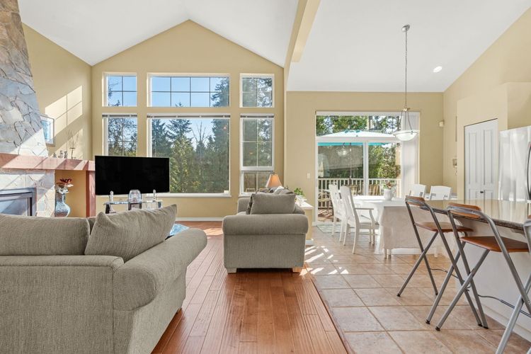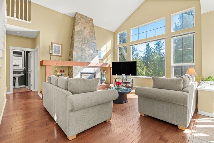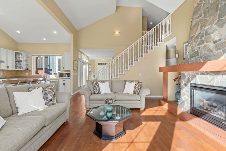 RARE Stoneridge Edgewater 2 - by Parklane Homes. SOUTHEAST facing fully fenced private backyard w/ TREED VIEWS. Fantastic family layout features 7 Bed 4 Bath 4062sf & SOURING VAULTED CEILINGS in family room & kitchen plus vaulted ceilings in primary bedroom/ensuite. Gourmet kitchen w/ stainless steel appliances, refinished cabinets (incl bathroom), open to spacious family room w/ cozy gas fireplace, eating area & overlooking treed yard. Beautiful Cherry Engineered Hardwood flrs main & up. Inner courtyard patio off DR w/ gas hookup perfect for Summer bbq's. 50 yr warranty HARDI-PLANK siding & TILE roof. Up 3 large beds w/ dream primary suite. Fully finished WALKOUT BASEMENT w/ 3 beds. Suite potential. Highly desirable neighbourhood steps to trails, all levels of schools. Showings by Apt!