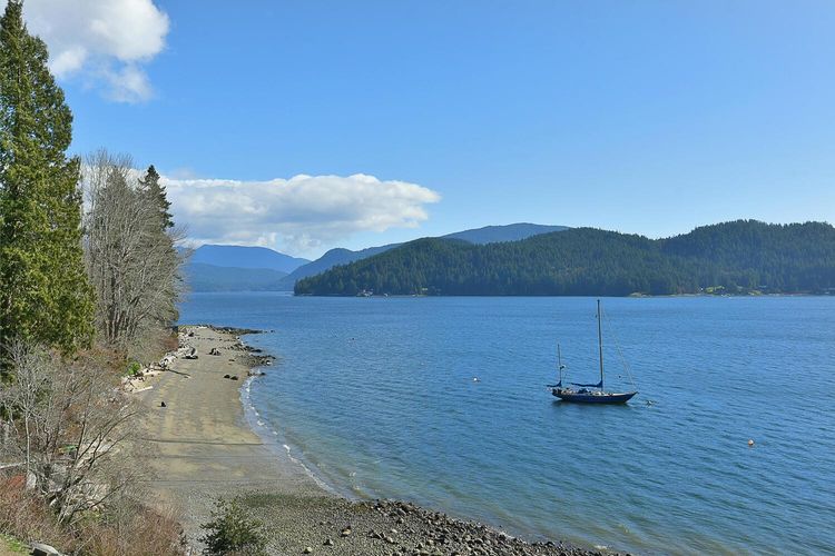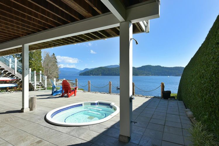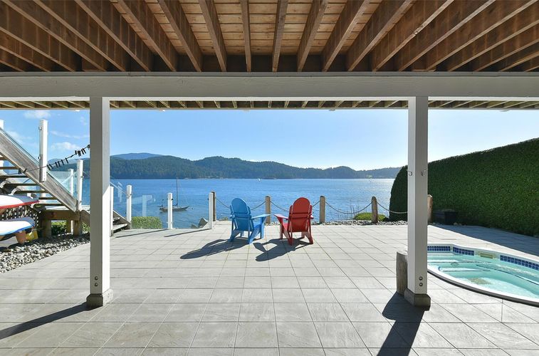 Architecturally designed 2-storey waterfront home on the Sunshine Coast, between Langdale Ferry and Gibsons. Built in 2009 to high standards with fir floors and 8' custom doors. Main floor features 20' vaulted ceilings, stone fireplace, and full-length deck with waterfront views. 4 bedrooms, 2.5 baths, plus storage/5th bedroom. 6-person hot tub on lower deck, private beach-level deck, mooring buoy near Soames Beach. One-car garage above workshop, extra parking, mature low-maintenance gardens, monitored security, Control 4 surround sound. Impeccably maintained home in an unbeatable location.