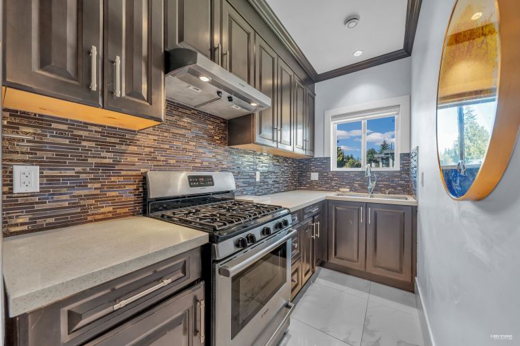 Welcome to this stunning 7-bed, 6-bath luxury home on a generous 7,578 sq ft lot with rear lane access in a highly desirable Burnaby location. The home offers excellent flexibility with a two-bedroom mortgage helper suite and optional flex suite, ideal for multi-generational living or rental income. The large backyard features future development potential, including the possibility for a laneway home or multiplex development of up to 6 units (buyer to verify with the City).This north–south facing home provides abundant natural light and great cross-ventilation. The functional floor plan features 12' ceilings in the main living area, an open-concept kitchen with a separate wok kitchen, spacious bedrooms, and radiant floor heating throughout. Minutes to Metrotown, Crystal Mall and Skytrain.