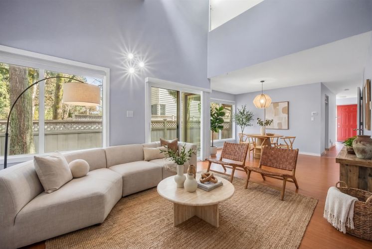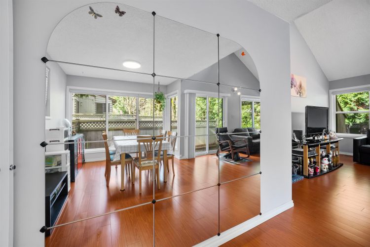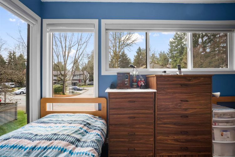 Welcome to Greentree Village! This private corner-unit townhouse offers 3 bedrooms in a quiet, family-friendly community. Bright and functional layout with tiled entry, spacious living and dining area, and sliding doors leading to a large patio and fenced backyard backing onto green space. Updated kitchen with quartz countertops and newer appliances. Recent upgrades include furnace, windows, blinds, laminate flooring in the basement, and refreshed powder room. Fully finished basement features a bedroom, large laundry area, and ample storage. Enjoy access to the community centre with indoor pool, gym, and playground. Prime location near BCIT, parks, transit, Metrotown, and easy highway access.**OPEN HOUSE: March 21 & 22, 2 - 4 PM