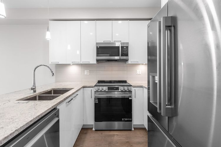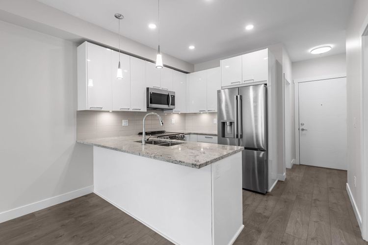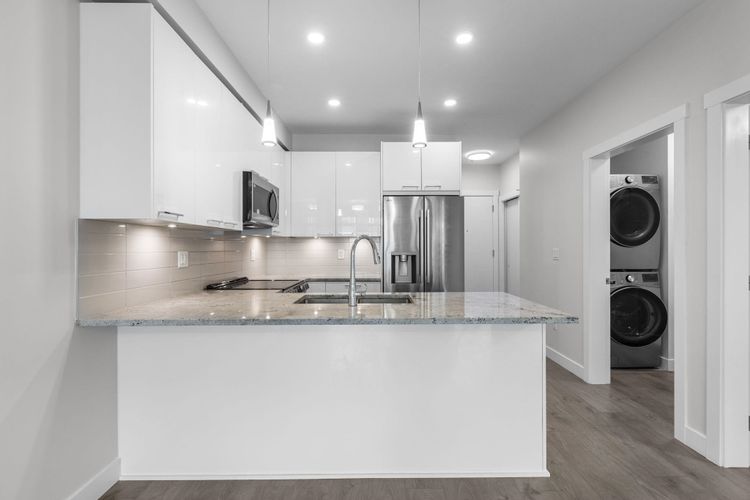 Welcome to The Georgia by Whitetail Homes, ideally located on the edge of Downtown Langley. This freshly painted 2 bedroom, 2 bathroom home is tucked away on the quiet side of the building and offers a bright, functional layout. Improvements include new lighting and brand new stainless steel appliances with extended warranty. Enjoy a covered balcony for year round outdoor space along with the convenience of 2 parking stalls and a storage locker. The primary bedroom also features A/C for added comfort. Residents have access to a gym and are minutes from shopping, restaurants, parks, Kwantlen Polytechnic University, and the future SkyTrain expansion. Move in ready in a highly convenient location. 2 pets allowed.