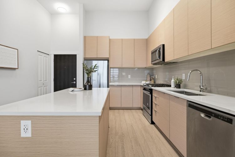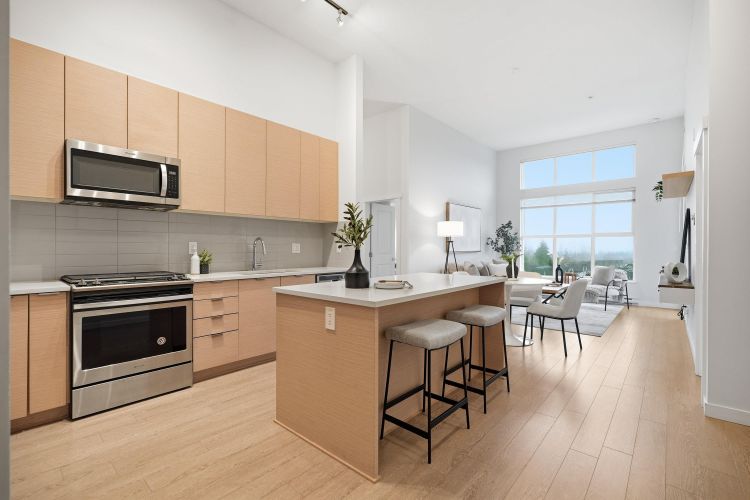Welcome to Union Park by Polygon. This bright and beautifully designed 2 Bed plus Den, 2 Bath corner unit offers 894 sq ft of modern living on the top floor, featuring high ceilings. Enjoy breathtaking mountain views from your private balcony and an abundance of natural light through large windows. The open concept layout includes a gourmet kitchen with a gas range, sleek cabinetry, and premium finishes-ideal for entertaining. Spacious bedrooms and a versatile den, perfect for a home office, enhance flexibility. EV chargers are available in the parkade. Residents enjoy the impressive 12,000 sq ft Union Club, featuring an outdoor pool, hot tub, gym, basketball court, and guest suites. Located close to shopping, parks, schools, and with easy highway access, this is a rare opportunity in a so