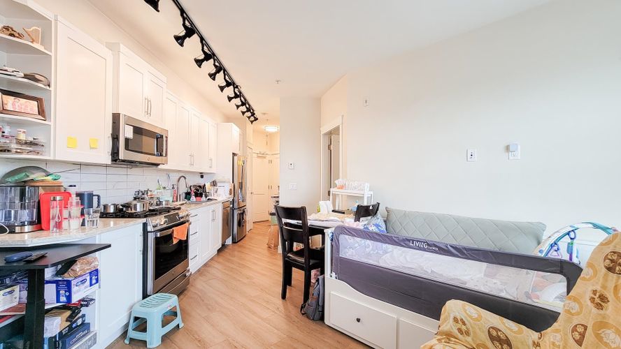 Luxury living at Ledgeview by Quadra Homes! This beautifully crafted 1 bed, 1 bath home offers a bright, modern layout with 9' ceilings, oversized triple-glazed windows, quartz countertops, high-end stainless steel appliances, gas range, shaker cabinetry, A/C rough-in, built-in wall safe, and a spa-inspired bath with heated floors and fog-free mirror. Heat and gas are included in the strata fees! Enjoy premium amenities including a gym, clubhouse, rooftop patio, bike room, playground, and community garden. Steps to Gateway SkyTrain, shopping, parks, and more. Includes 1 parking.